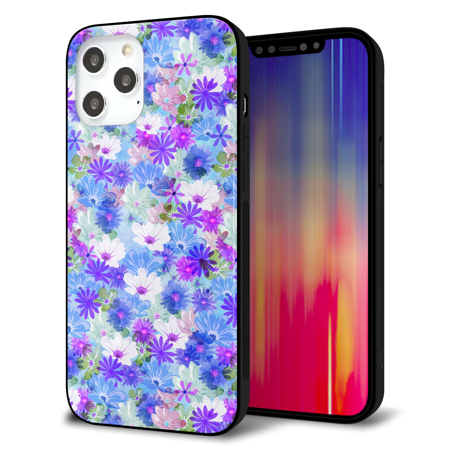 iPhone12 Pro Max 強化ガラス&TPUスマホケース ガラプリ【SC875 リバティプリント プレスドフラワー(ブルー)】