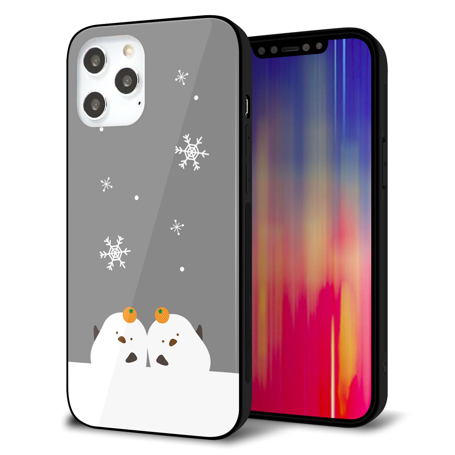 iPhone12 Pro Max 強化ガラス&TPUスマホケース ガラプリ【TA019 冬シマエナガ】