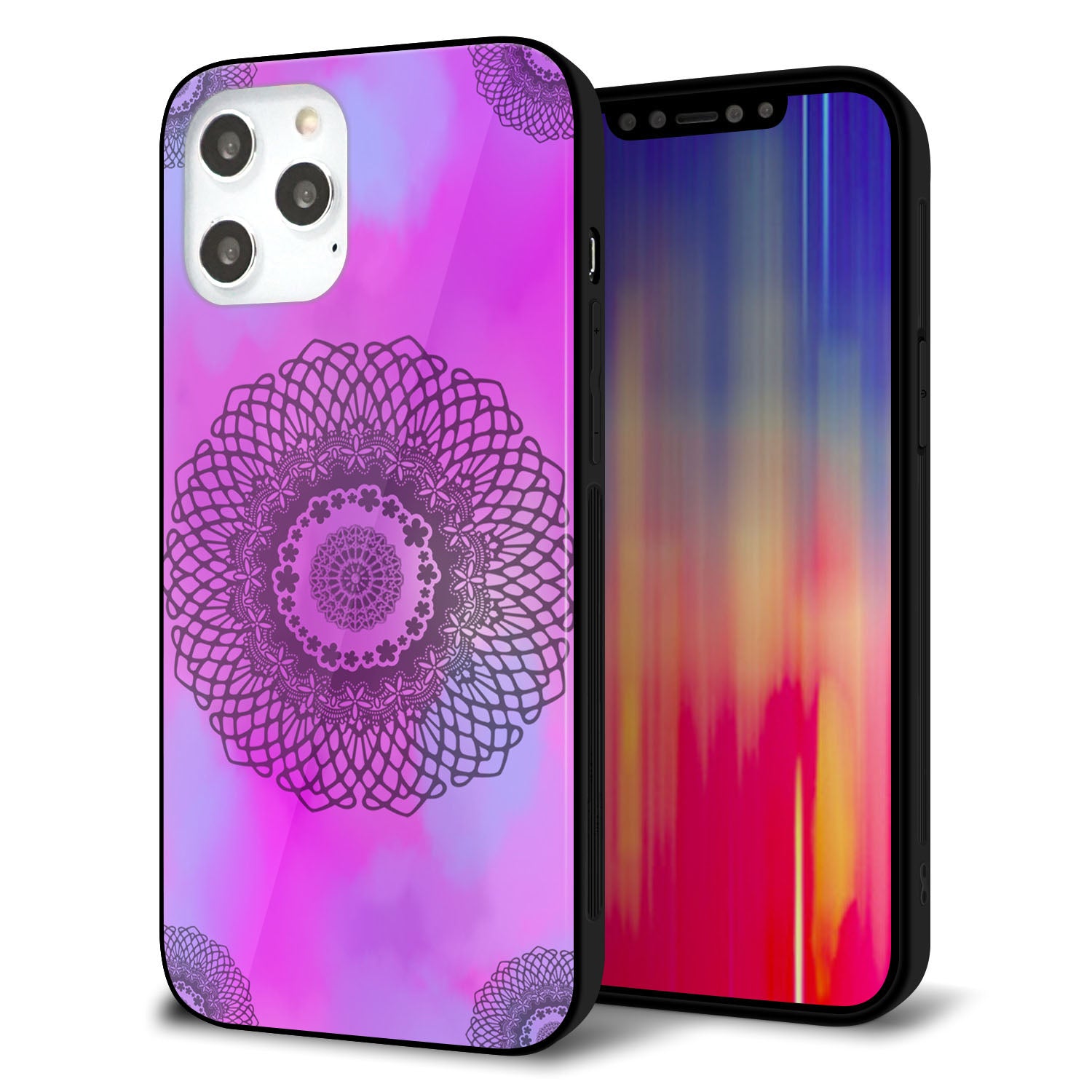 iPhone12 Pro Max 強化ガラス&TPUスマホケース ガラプリ【YJ344 レース】