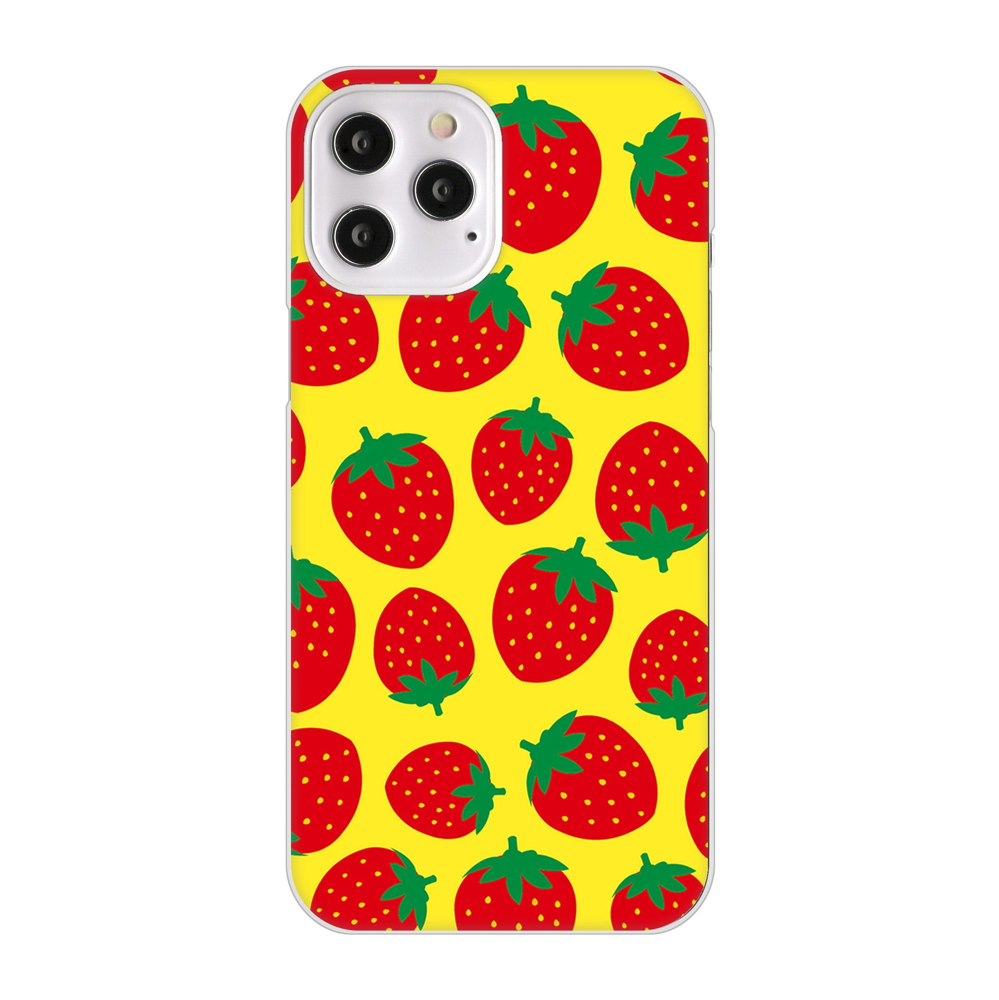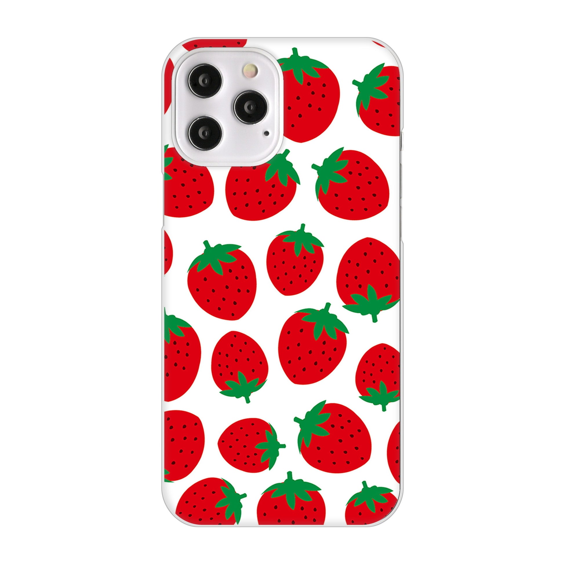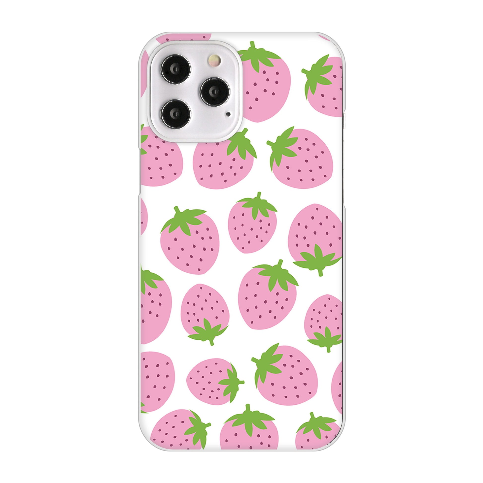 iPhone12 Pro Max 高画質仕上げ 背面印刷 ハードケース 小さいイチゴ模様
