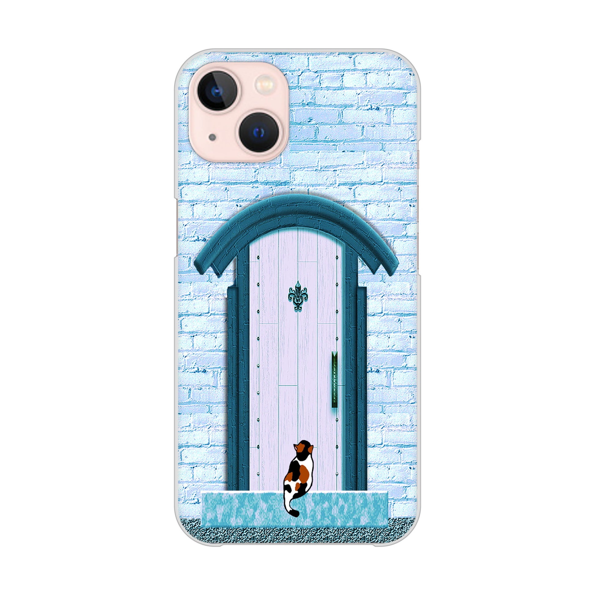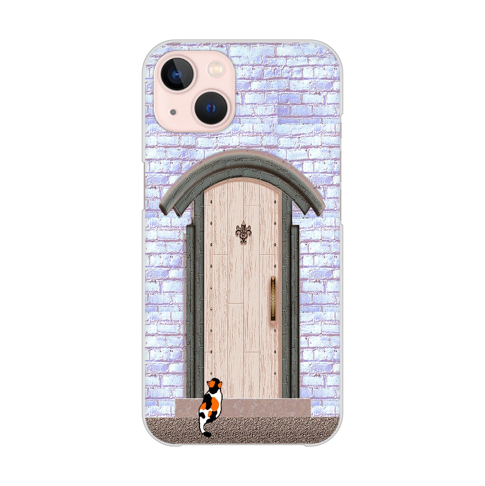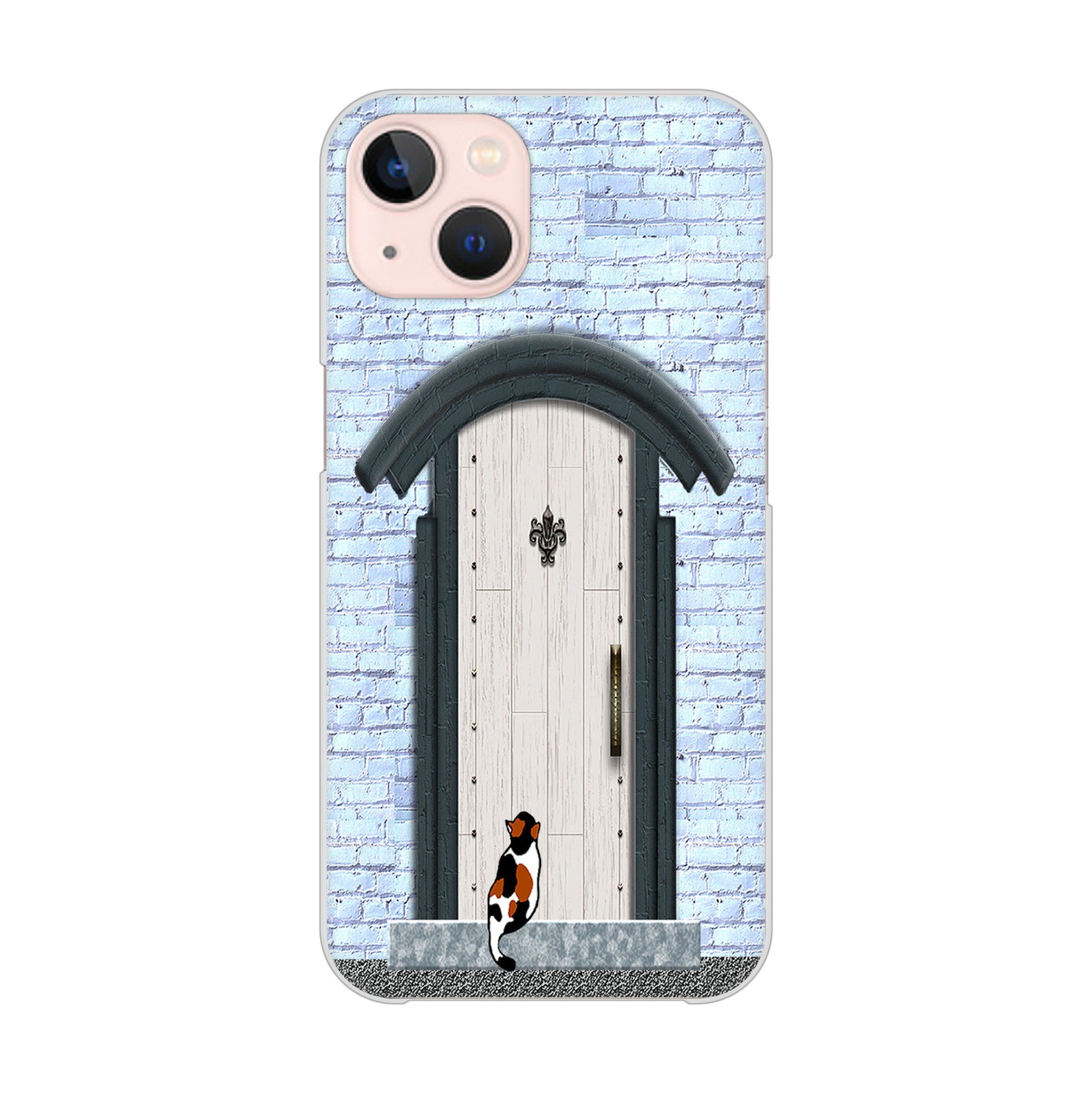 iPhone13 高画質仕上げ 背面印刷 ハードケース 猫とドア