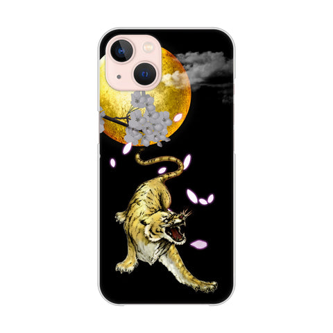 iPhone13 高画質仕上げ 背面印刷 ハードケース 月とタイガー