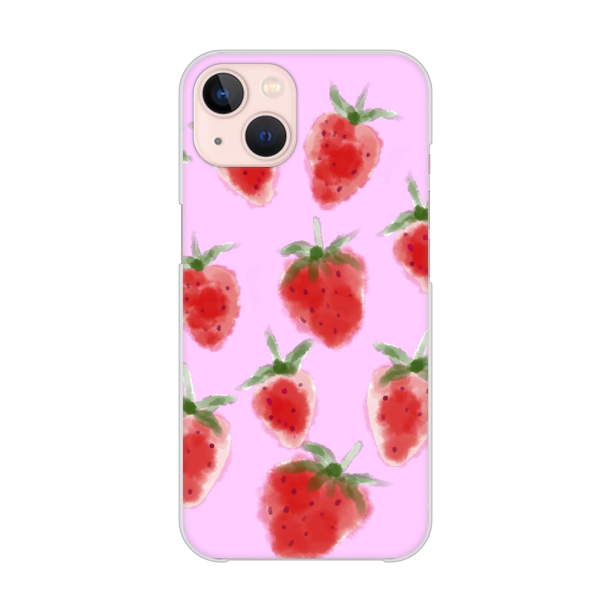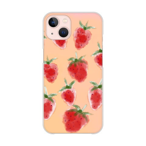 iPhone13 高画質仕上げ 背面印刷 ハードケース イチゴ 水彩