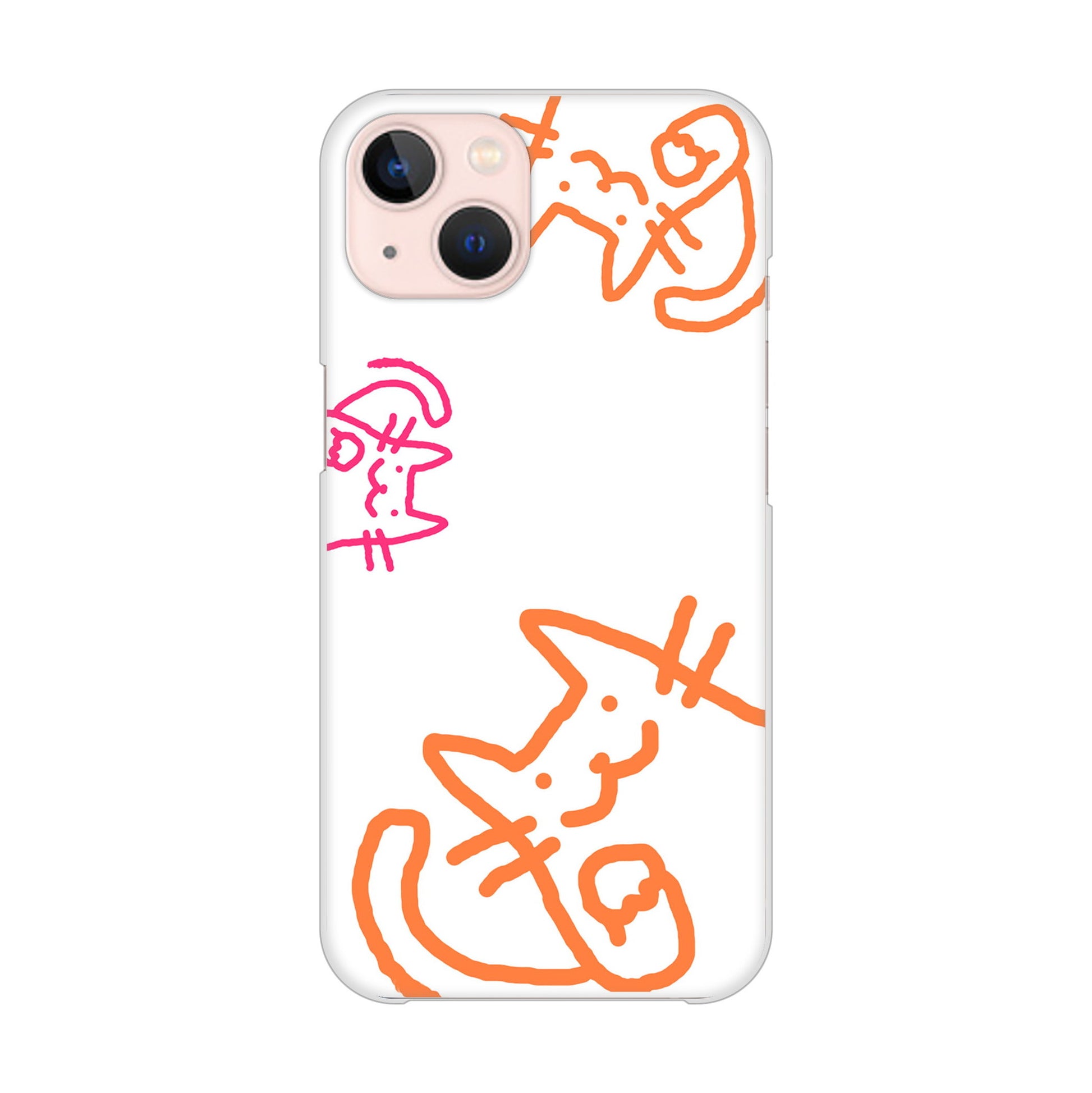 iPhone13 高画質仕上げ 背面印刷 ハードケース 【1098 手まねきする3匹のネコ】