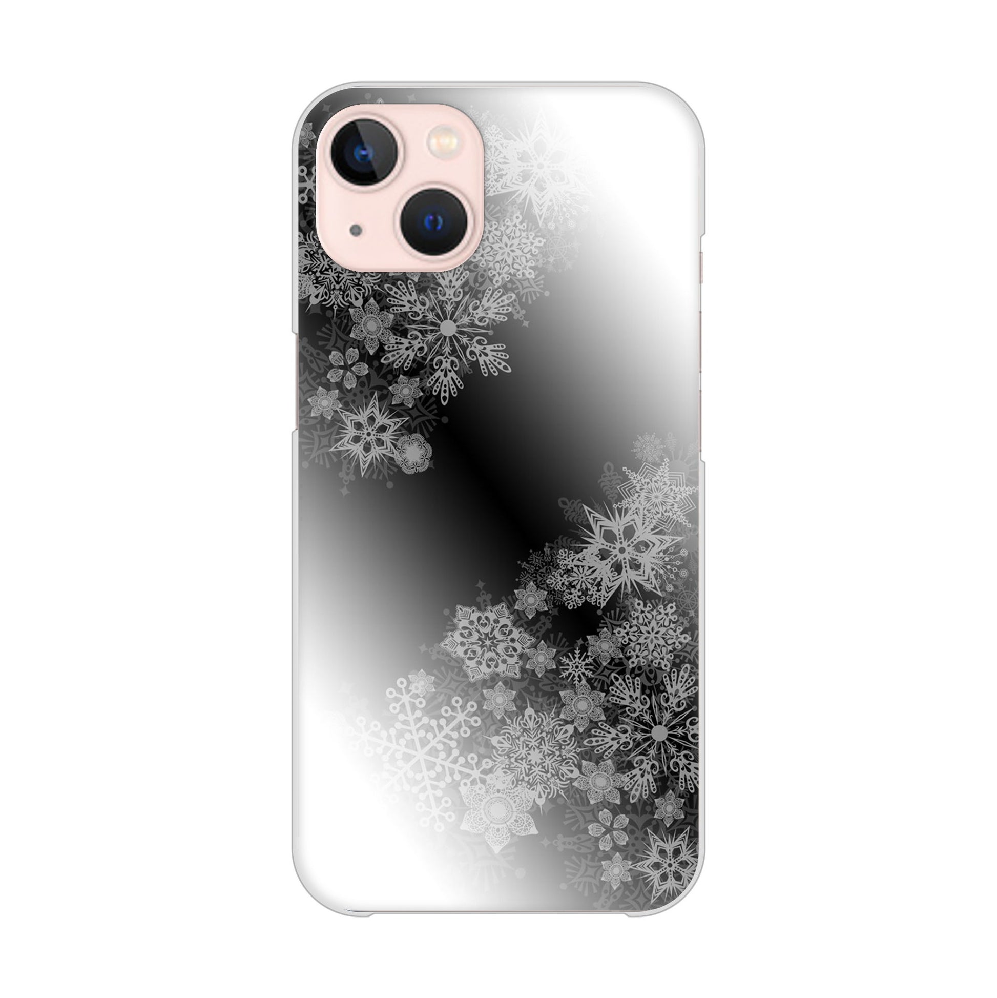 iPhone13 高画質仕上げ 背面印刷 ハードケース 【YJ340 モノトーン 雪の結晶 】