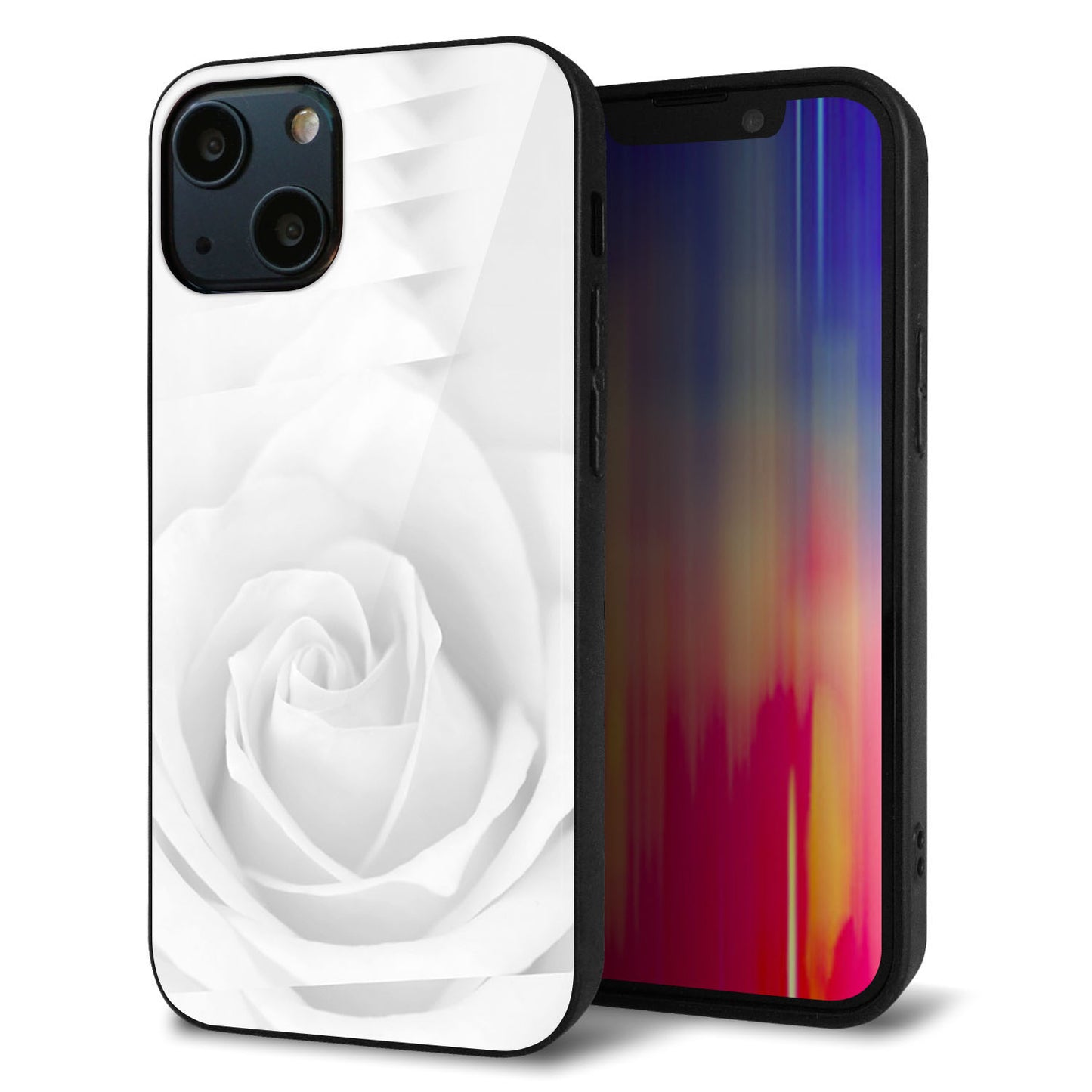 iPhone13 mini 強化ガラス&TPUスマホケース ガラプリ【402 ホワイトRose】