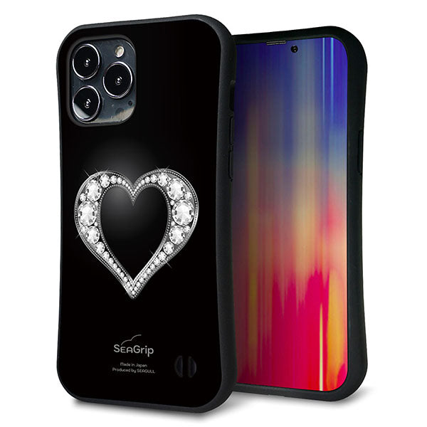 iPhone13 Pro Max スマホケース 「SEA Grip」 グリップケース Sライン 【041 ラインストーンゴージャスハート】 UV印刷