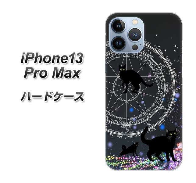 iPhone13 Pro Max 高画質仕上げ 背面印刷 ハードケース【YJ330 魔法陣猫 キラキラ 黒猫】