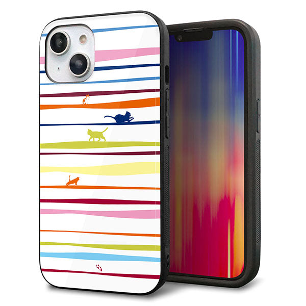 iPhone14 強化ガラス&TPUスマホケース ガラプリ【YA893 ストライプネコ02 L】