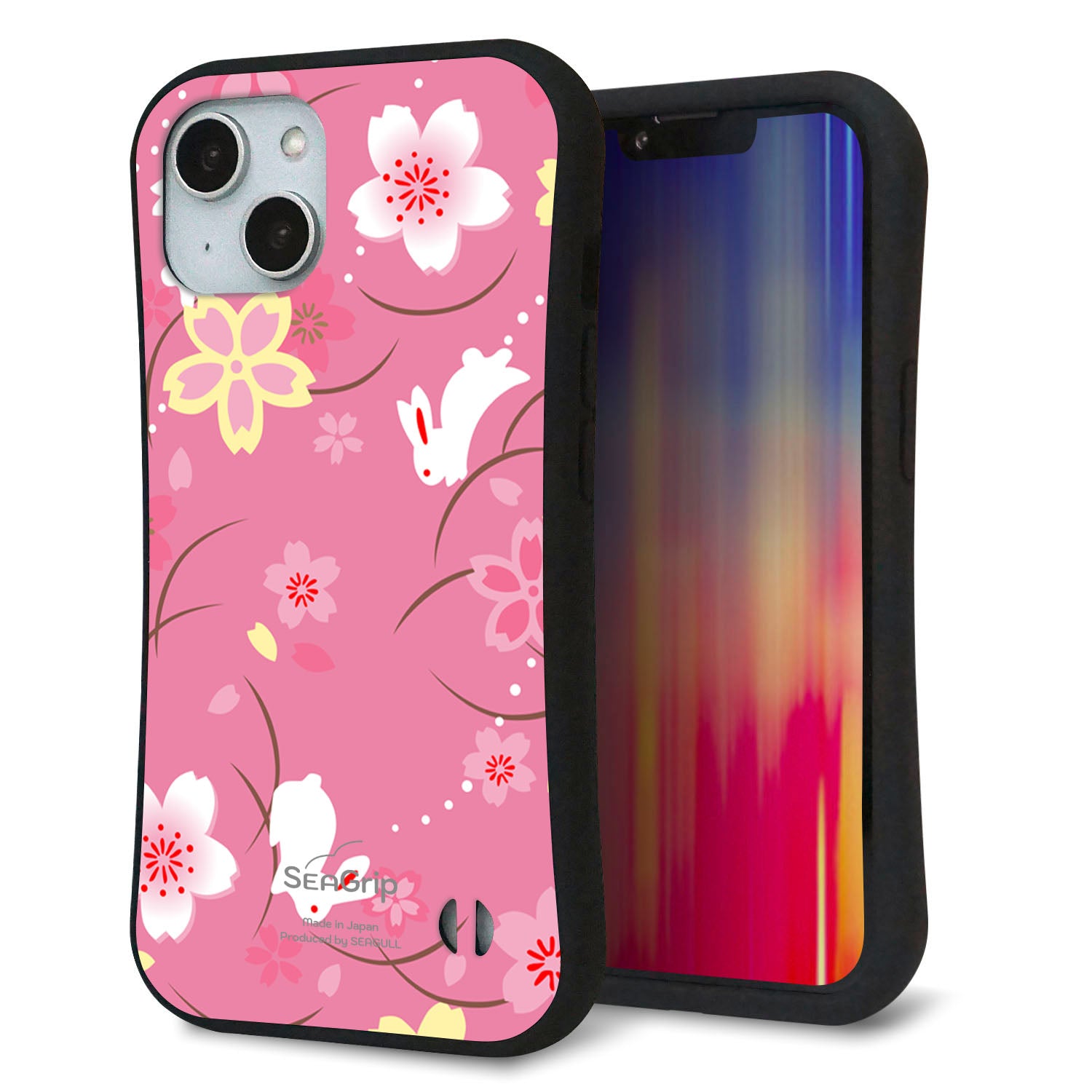 iPhone14 スマホケース 「SEA Grip」 グリップケース Sライン 【149 桜と白うさぎ】 UV印刷