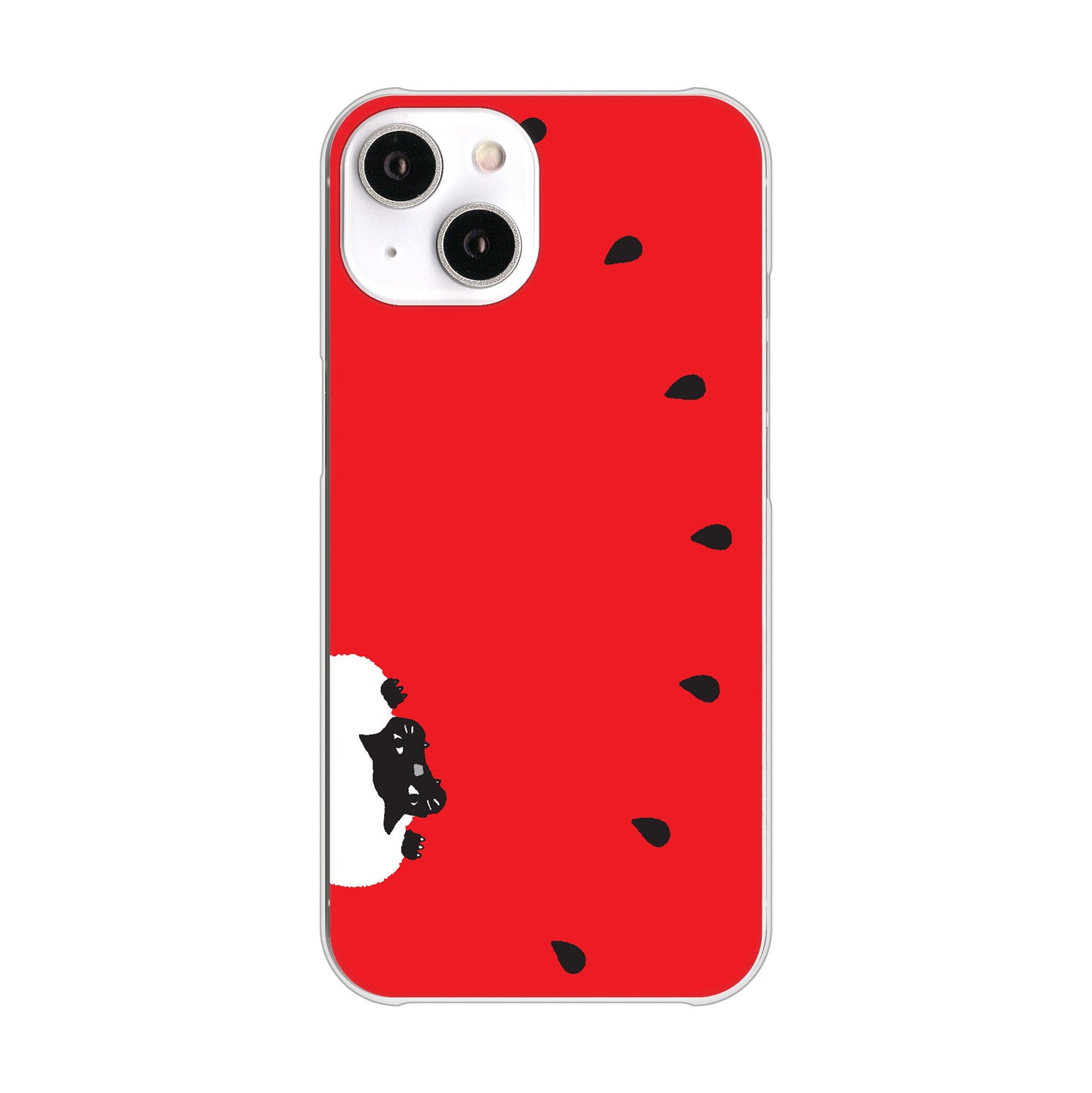 iPhone14 高画質仕上げ 背面印刷 ハードケース すいかをかじるネコ