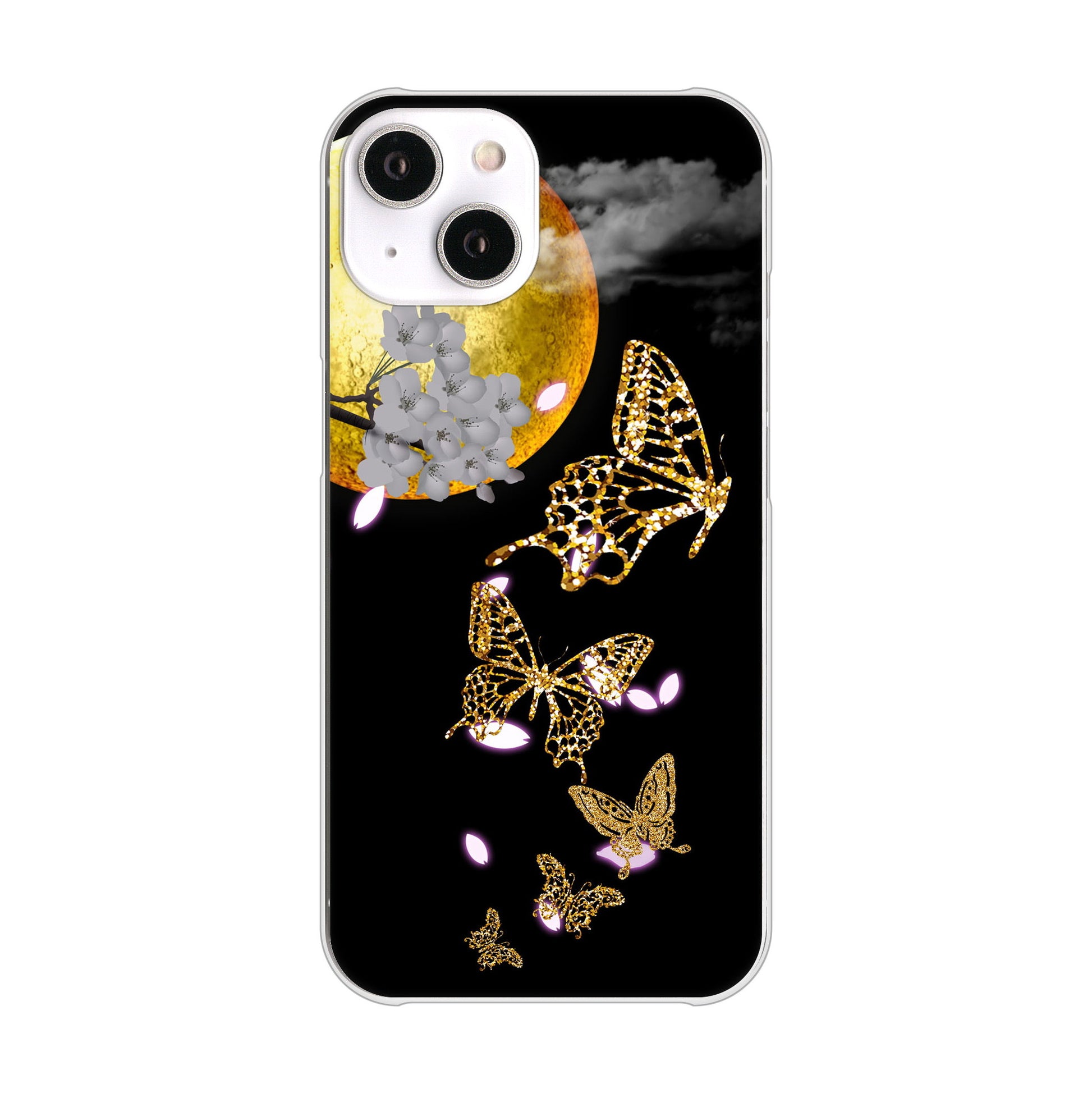 iPhone14 高画質仕上げ 背面印刷 ハードケース 【1150 月に昇る蝶】