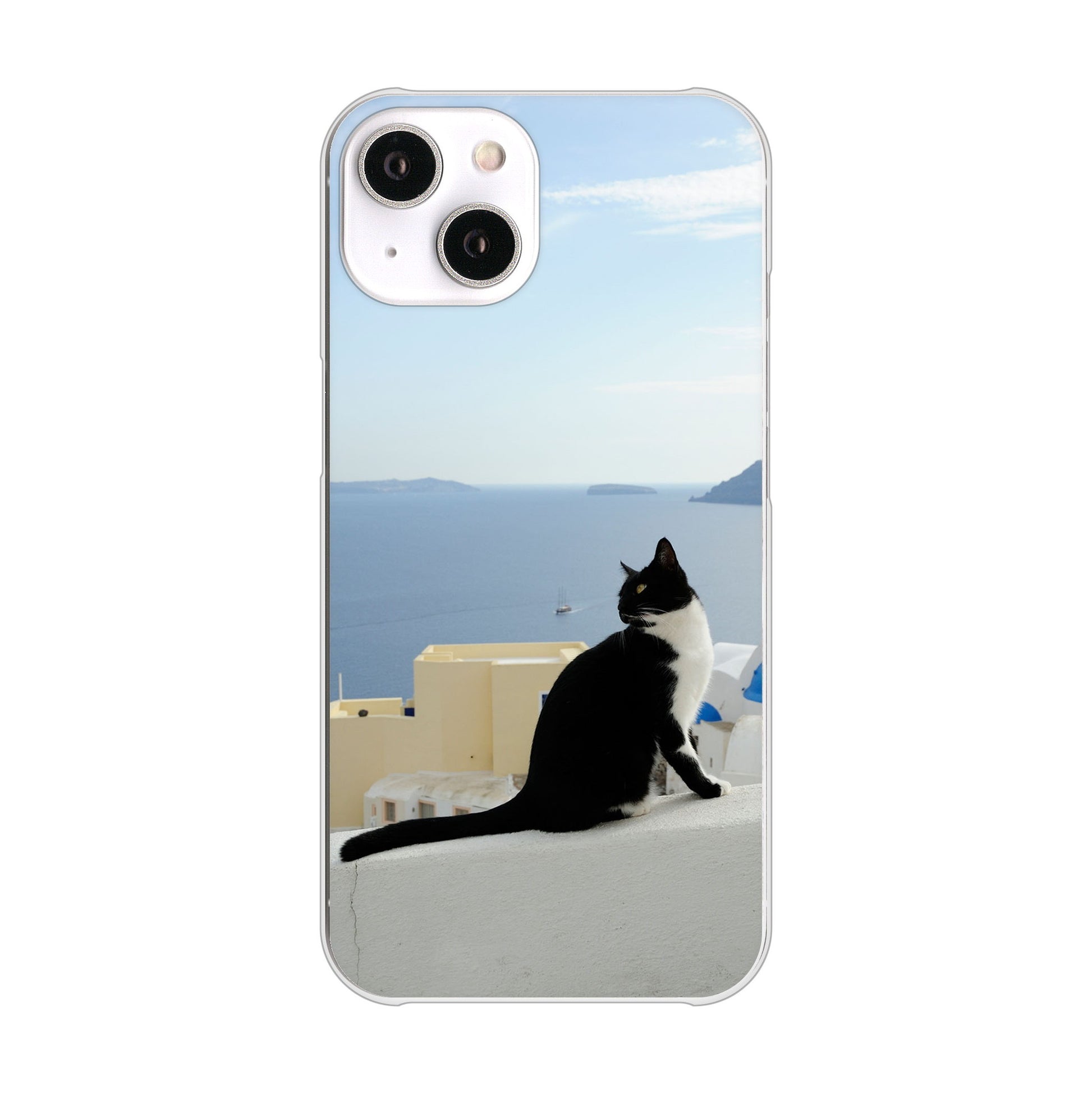 iPhone14 高画質仕上げ 背面印刷 ハードケース 【VA805 ネコと地中海】