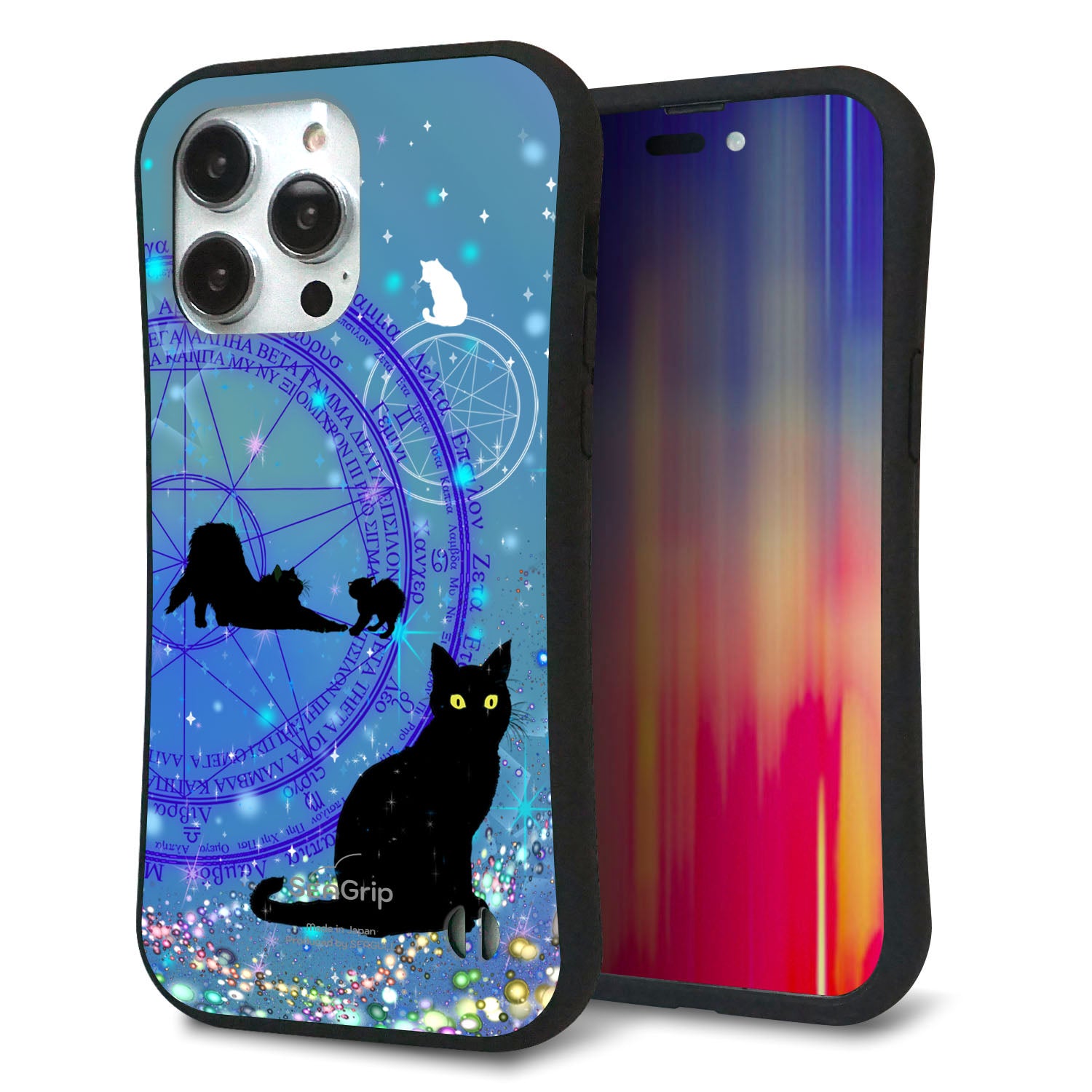 iPhone14 Pro Max スマホケース 「SEA Grip」 グリップケース Sライン 【YJ327 魔法陣猫 キラキラ かわいい】 UV印刷