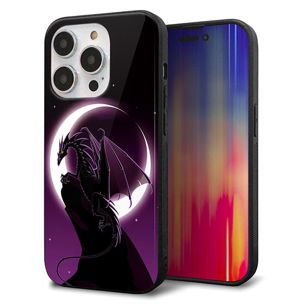 iPhone14 Pro 強化ガラス&TPUスマホケース ガラプリ【037 三日月とドラゴン】
