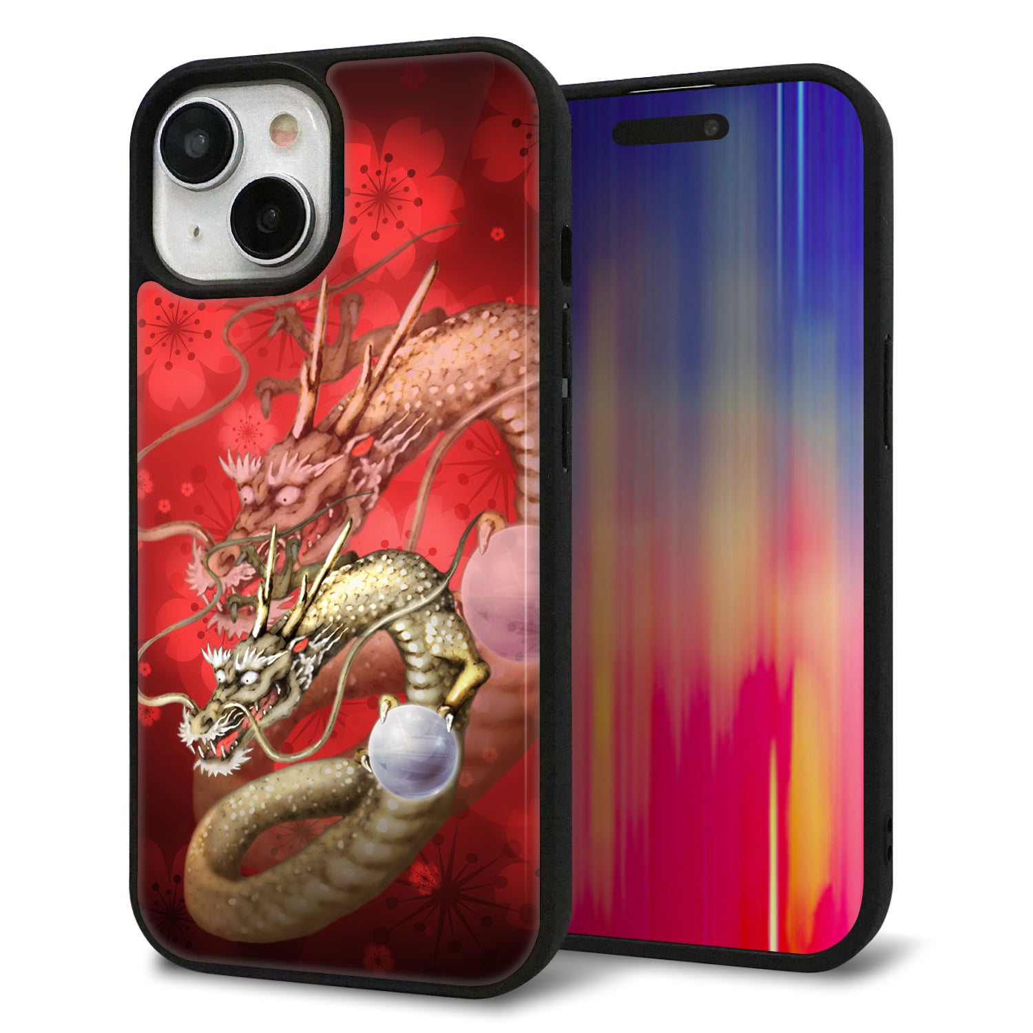 iPhone15 強化ガラス&TPUスマホケース ガラプリ【1004 桜と龍】