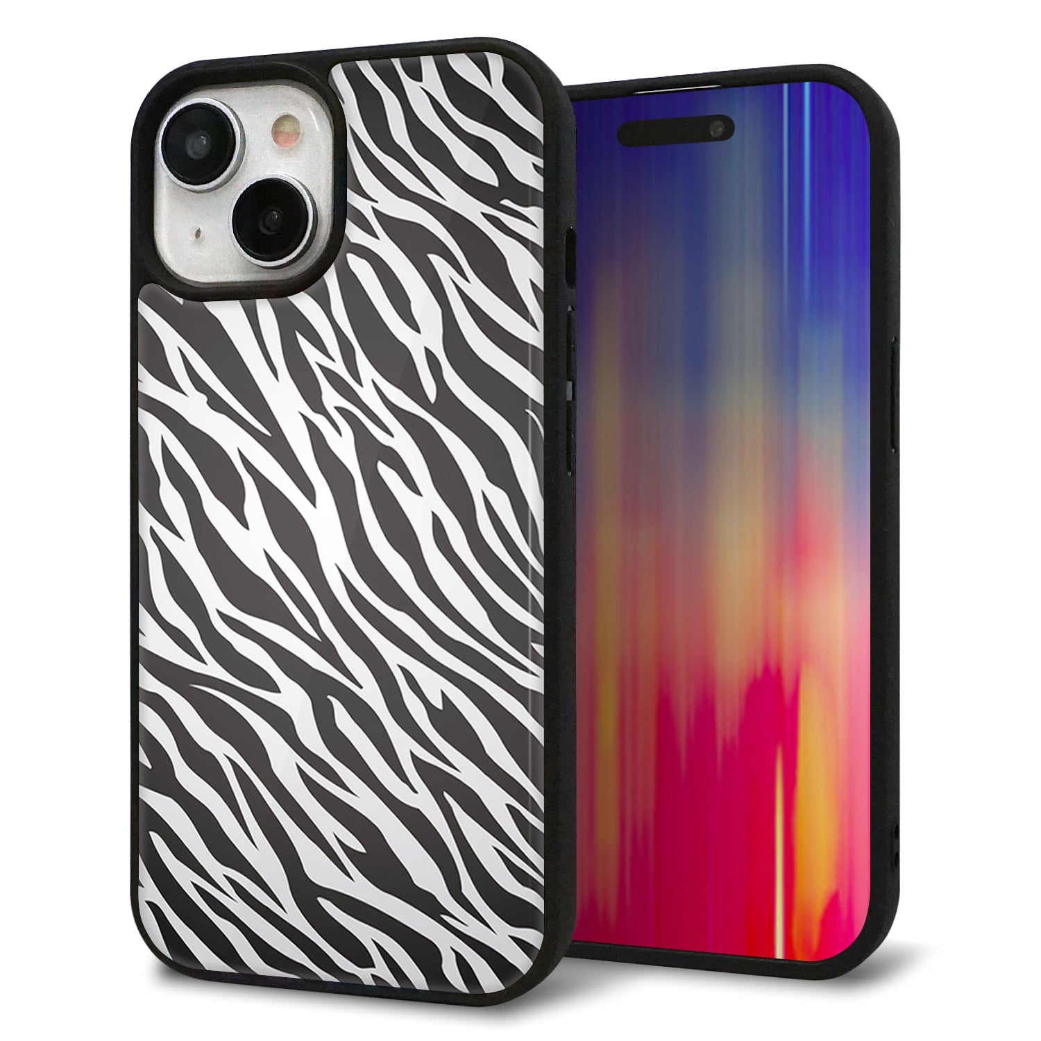 iPhone15 強化ガラス&TPUスマホケース ガラプリ【1057 デザインゼブラ(GL)】
