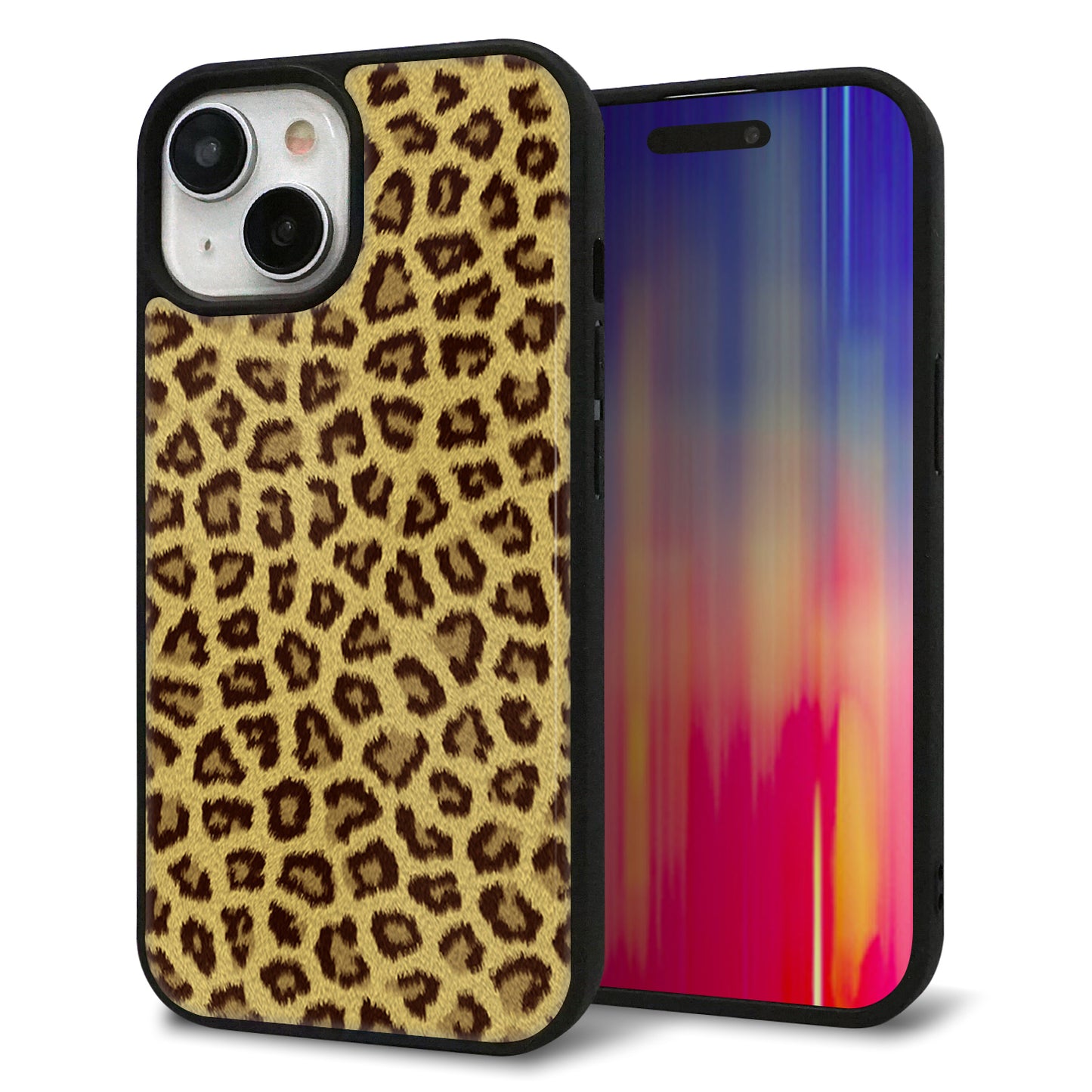 iPhone15 強化ガラス&TPUスマホケース ガラプリ【1065 ヒョウ柄ベーシックSゴールド】