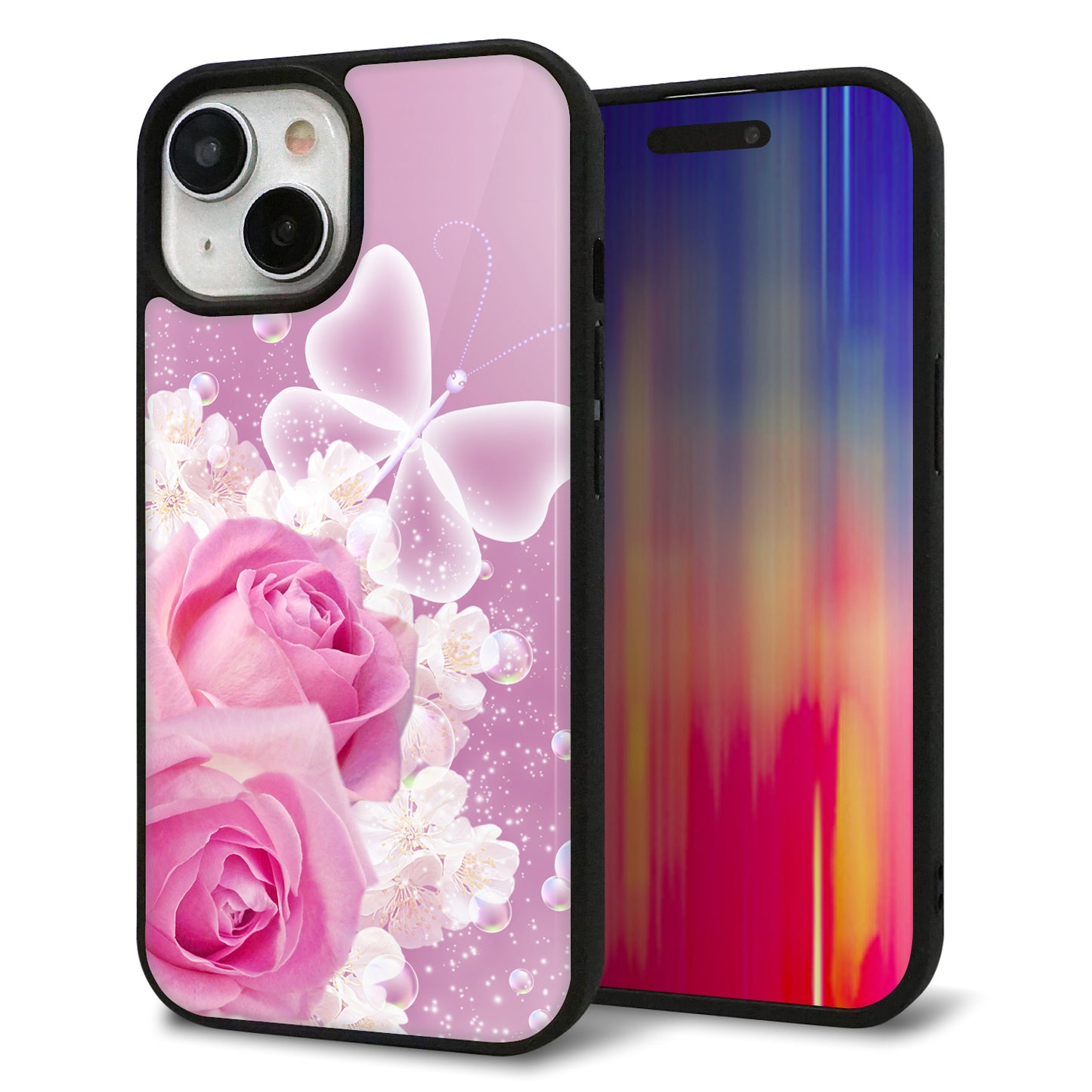 iPhone15 強化ガラス&TPUスマホケース ガラプリ【1166 ローズロマンス】