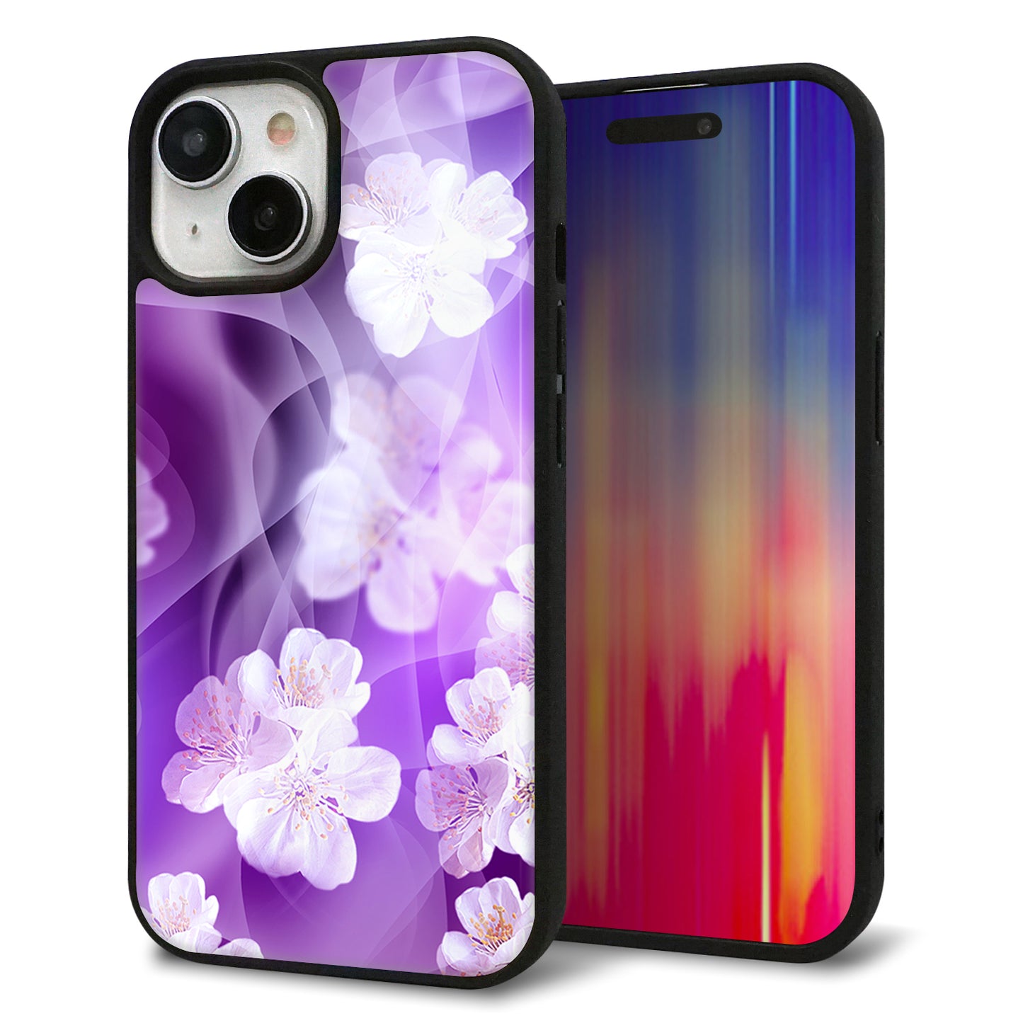 iPhone15 強化ガラス&TPUスマホケース ガラプリ【1211 桜とパープルの風】