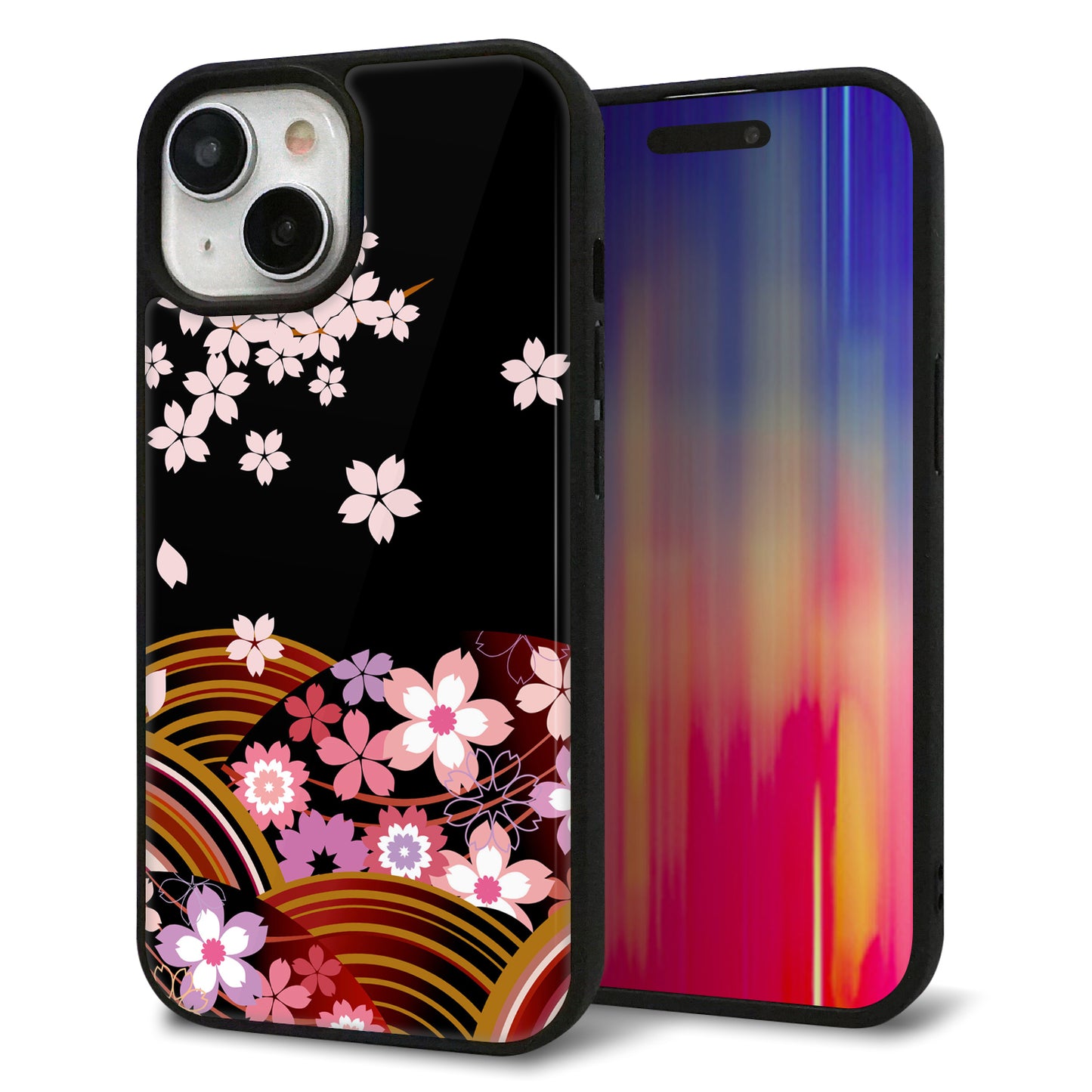 iPhone15 強化ガラス&TPUスマホケース ガラプリ【1237 和柄&筆文字・夜桜の宴】