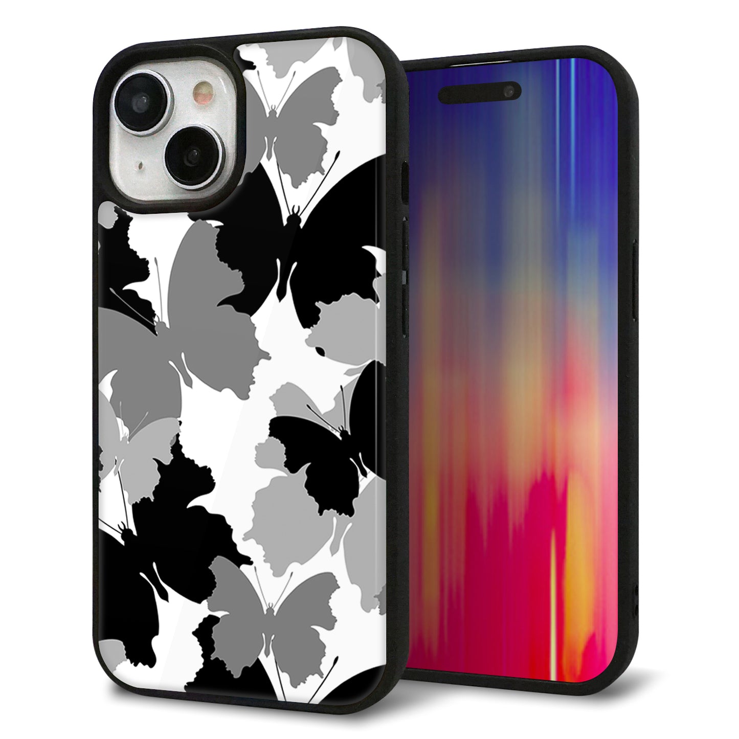 iPhone15 強化ガラス&TPUスマホケース ガラプリ【1336 夜の蝶】