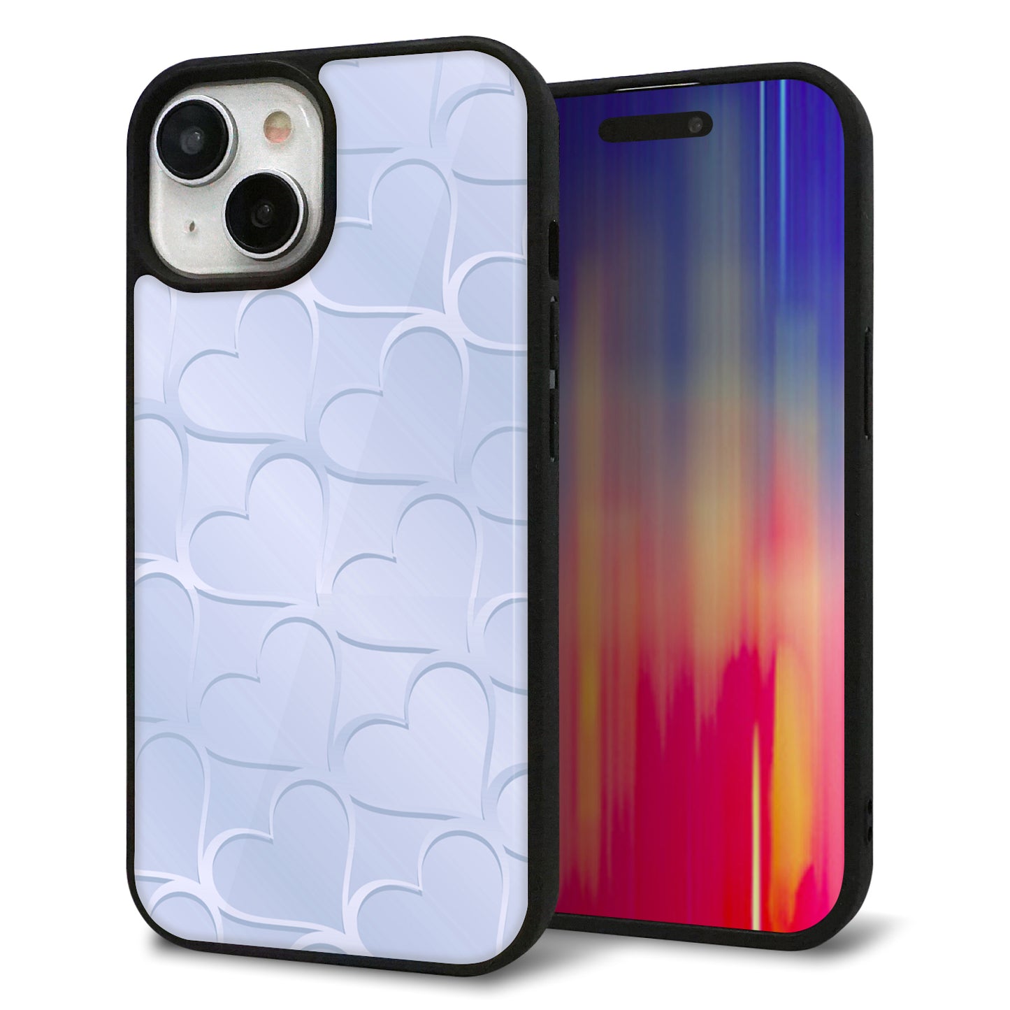 iPhone15 強化ガラス&TPUスマホケース ガラプリ【1341 かくれハート(ライトブルー)】