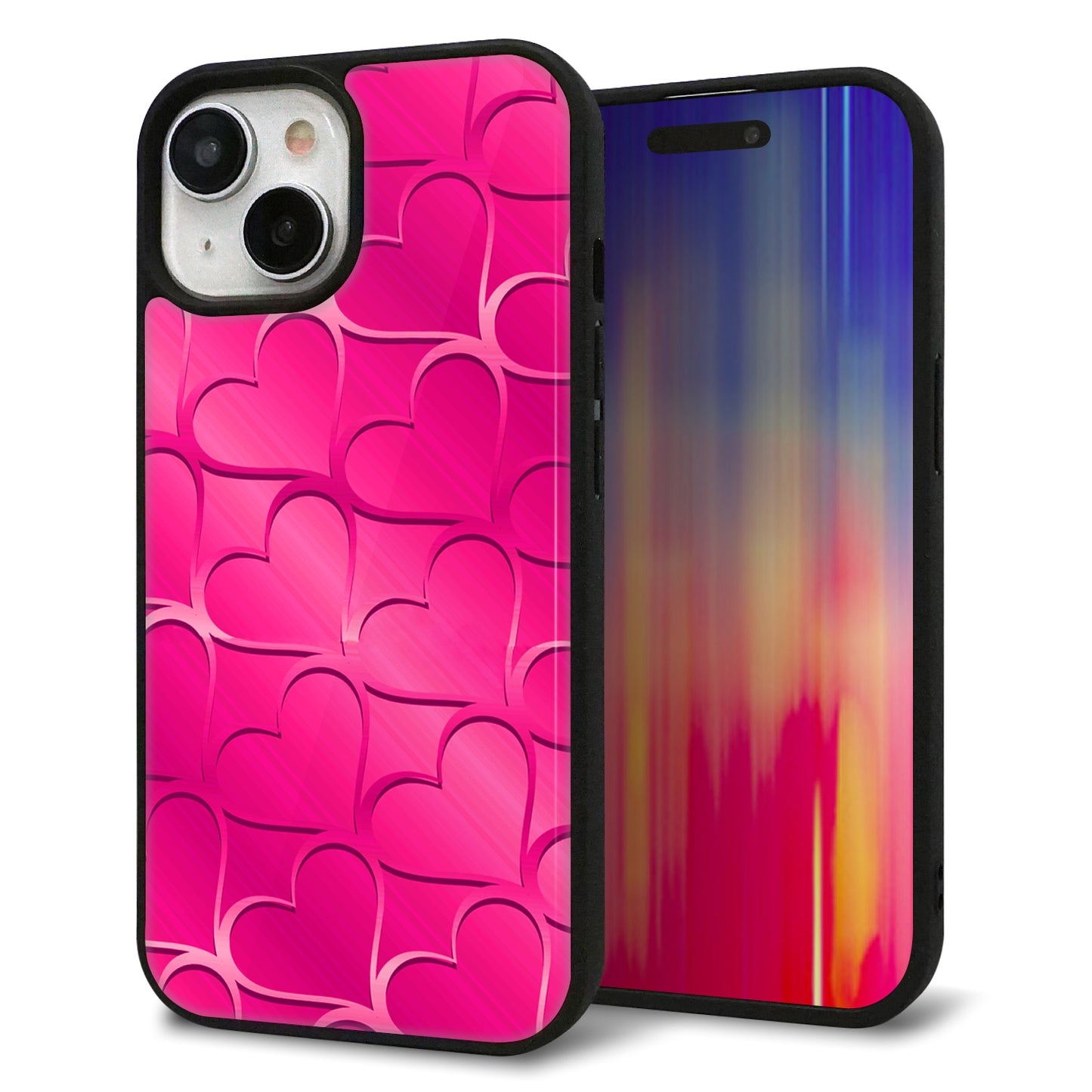 iPhone15 強化ガラス&TPUスマホケース ガラプリ【1347 かくれハート(ショッキングピンク)】
