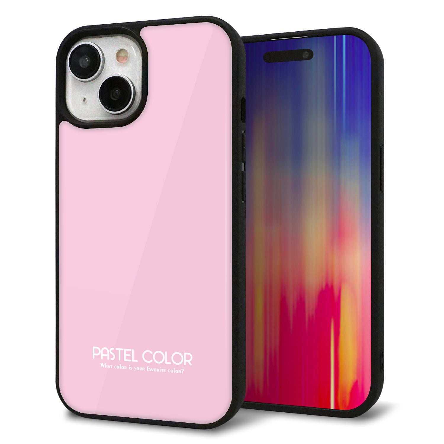 iPhone15 強化ガラス&TPUスマホケース ガラプリ【KM903 パステルカラー(パステルローズピンク)】
