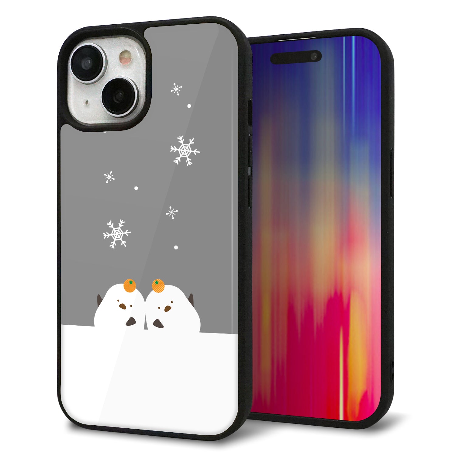 iPhone15 強化ガラス&TPUスマホケース ガラプリ【TA019 冬シマエナガ】