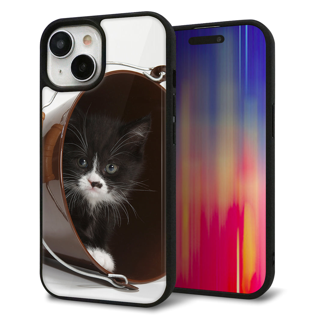 iPhone15 強化ガラス&TPUスマホケース ガラプリ【VA800 ネコとバケツ】