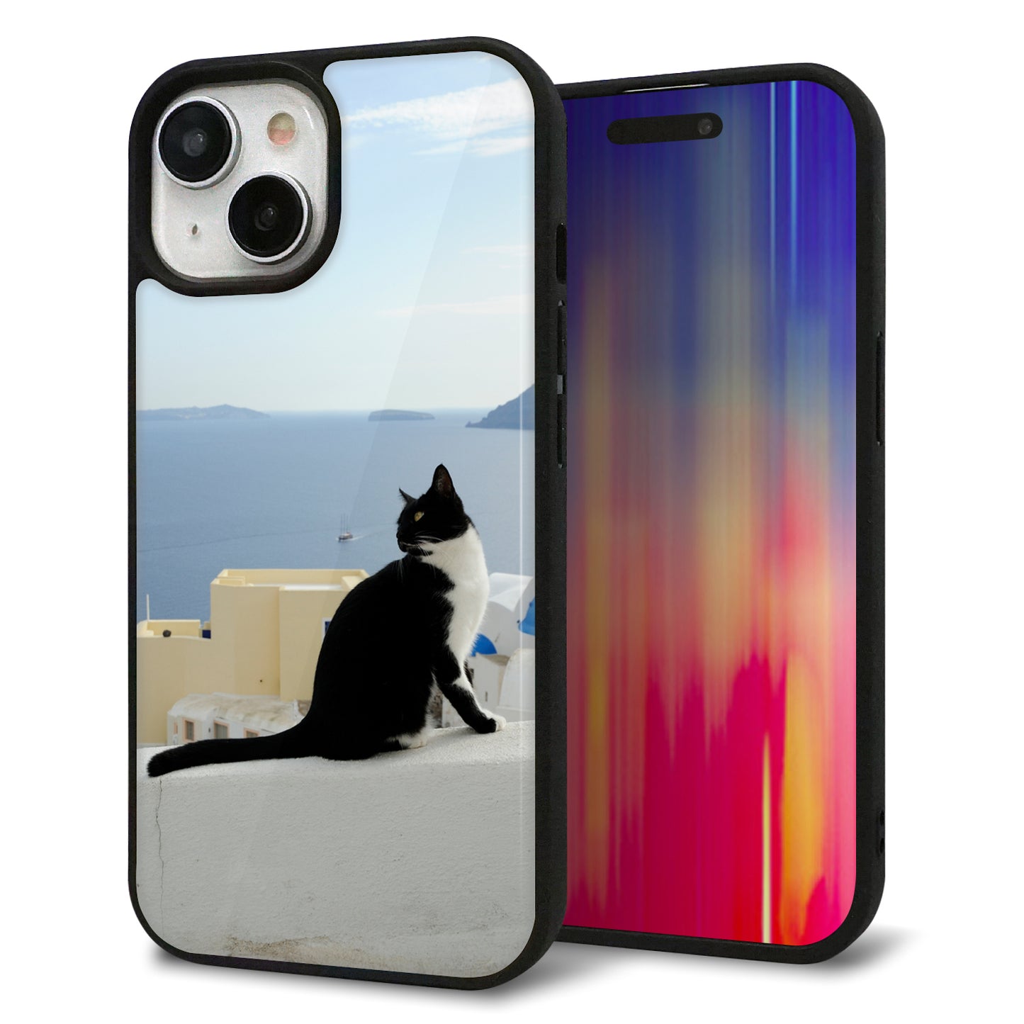 iPhone15 強化ガラス&TPUスマホケース ガラプリ【VA805 ネコと地中海】