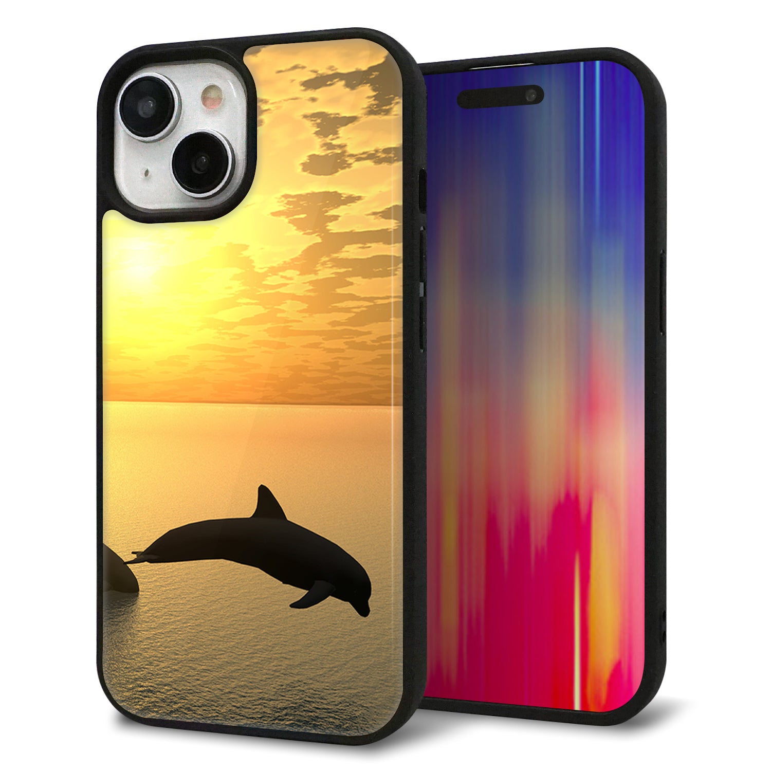 iPhone15 強化ガラス&TPUスマホケース ガラプリ【VA845 夕暮れのドルフィン】