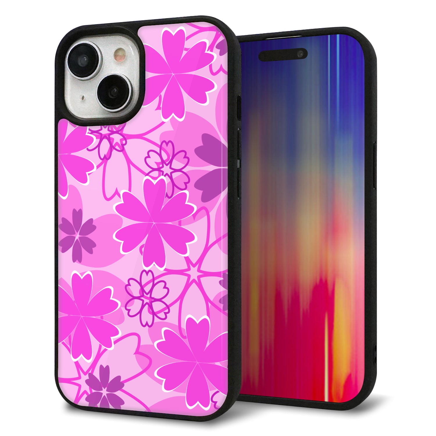 iPhone15 強化ガラス&TPUスマホケース ガラプリ【VA961 重なり合う花 ピンク】