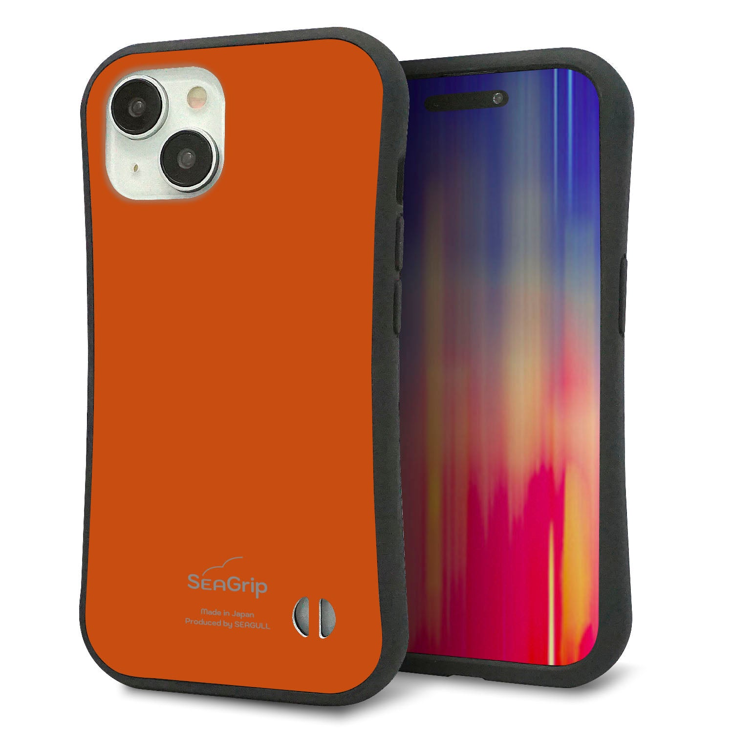 iPhone15 スマホケース 「SEA Grip」 グリップケース Sライン 【KM917 レトロカラー(ダークオレンジ)】 UV印刷