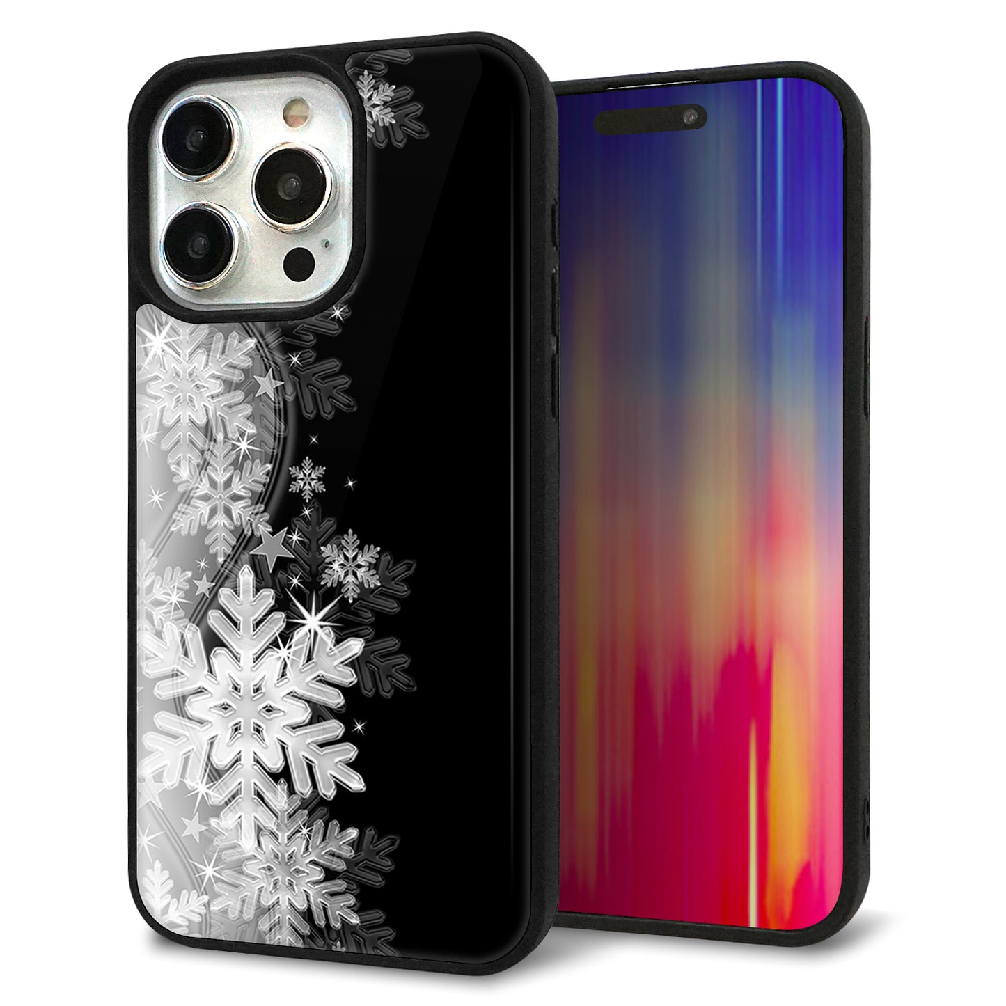 iPhone15 Pro Max 強化ガラス&TPUスマホケース ガラプリ【603 白銀と闇】