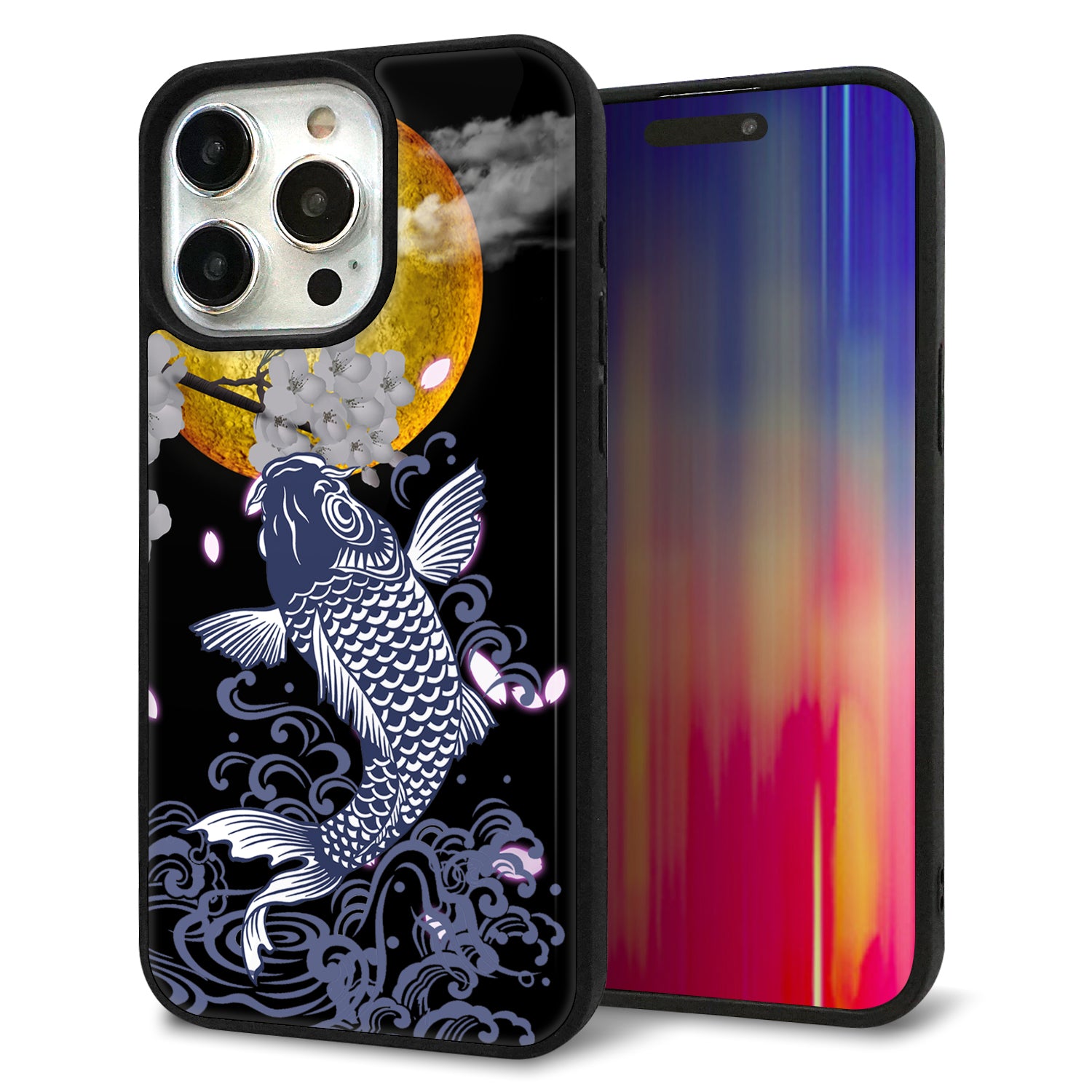 iPhone15 Pro Max 強化ガラス&TPUスマホケース ガラプリ【1030 月と鯉】