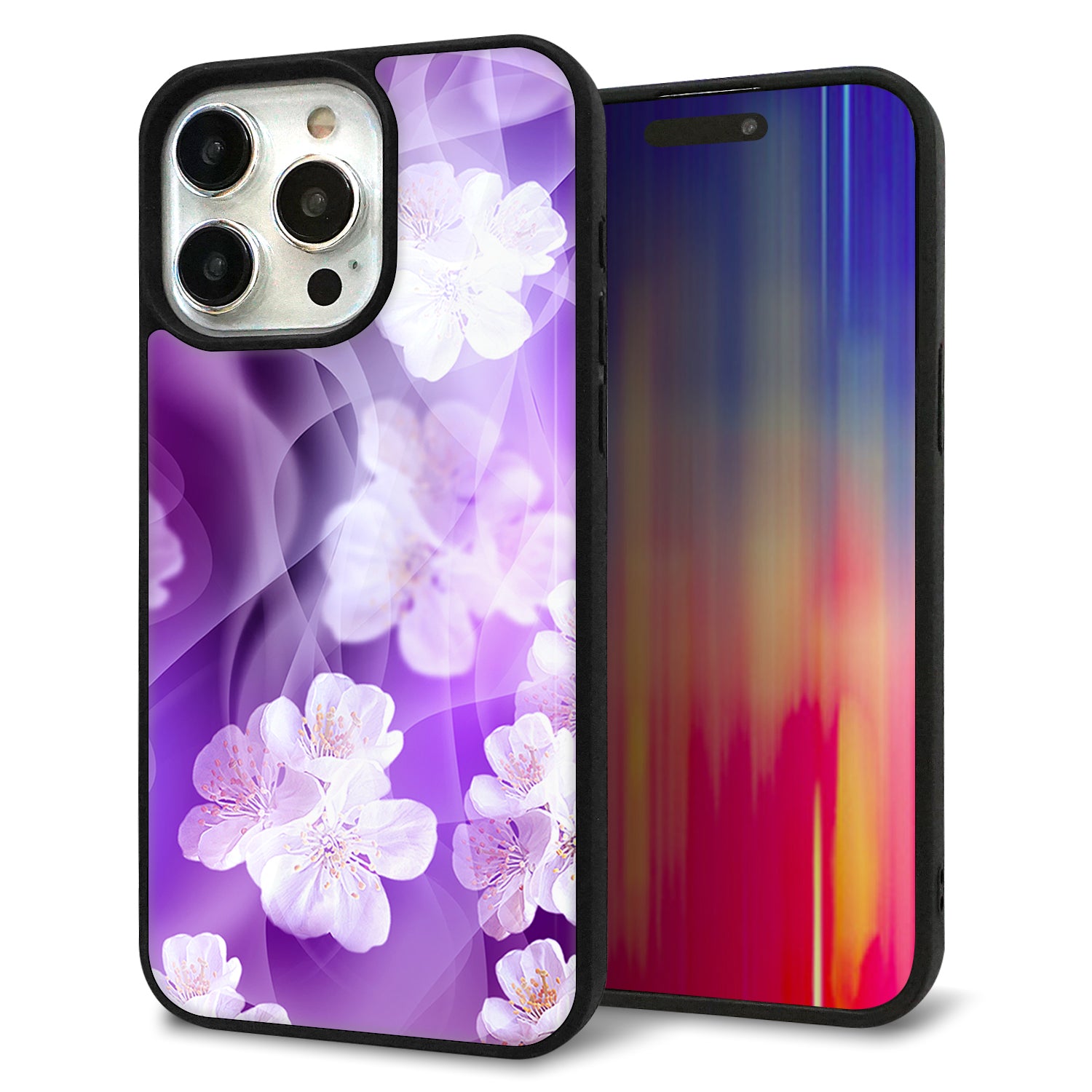 iPhone15 Pro Max 強化ガラス&TPUスマホケース ガラプリ【1211 桜とパープルの風】
