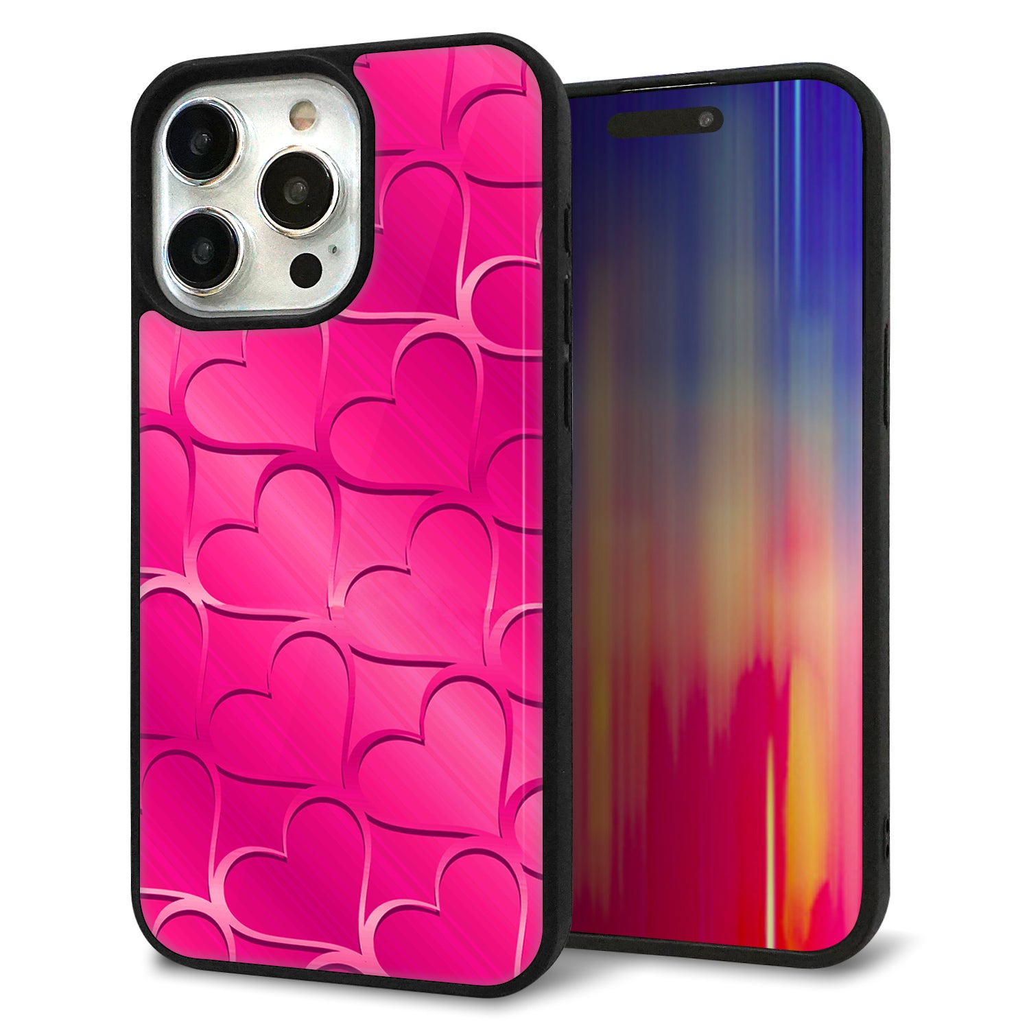 iPhone15 Pro Max 強化ガラス&TPUスマホケース ガラプリ【1347 かくれハート(ショッキングピンク)】