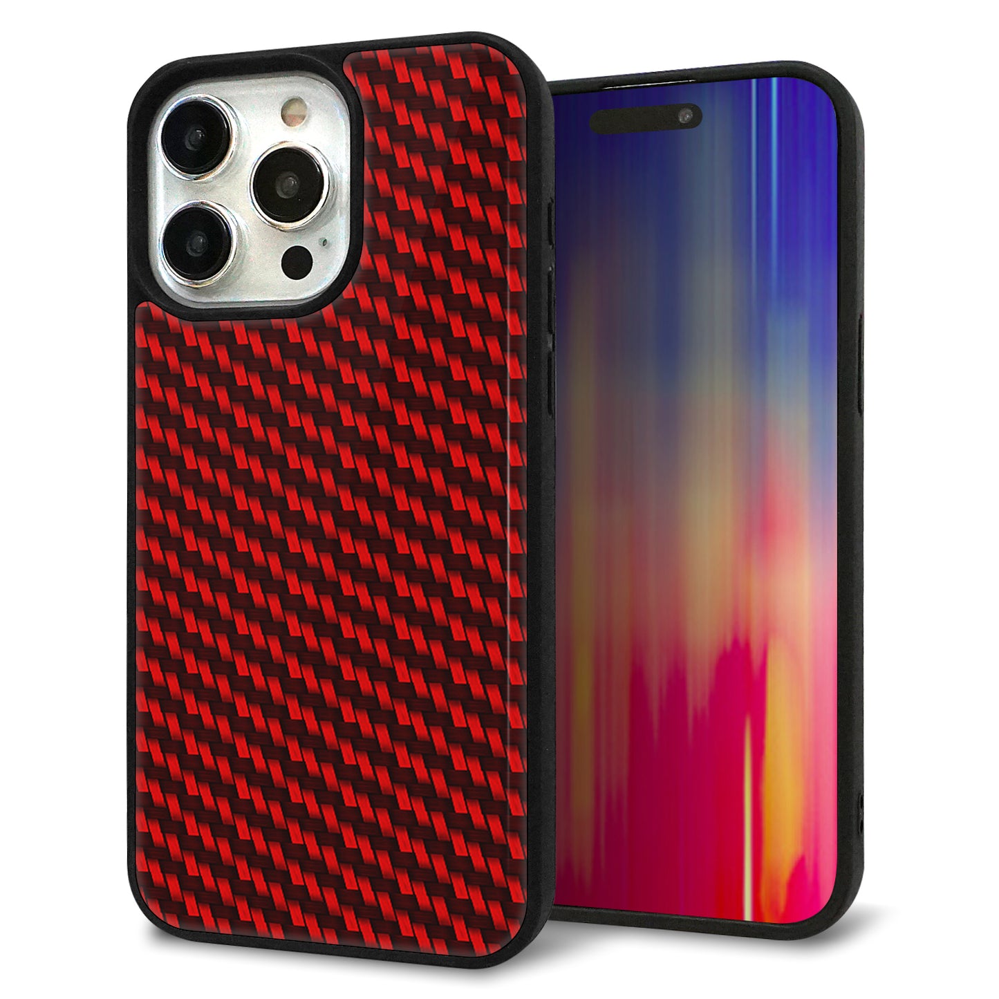 iPhone15 Pro Max 強化ガラス&TPUスマホケース ガラプリ【EK906 レッドカーボン】