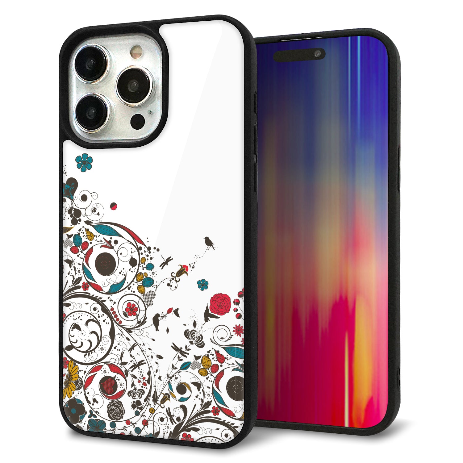 iPhone15 Pro Max 強化ガラス&TPUスマホケース ガラプリ【EK908 カラフルな花と鳥】