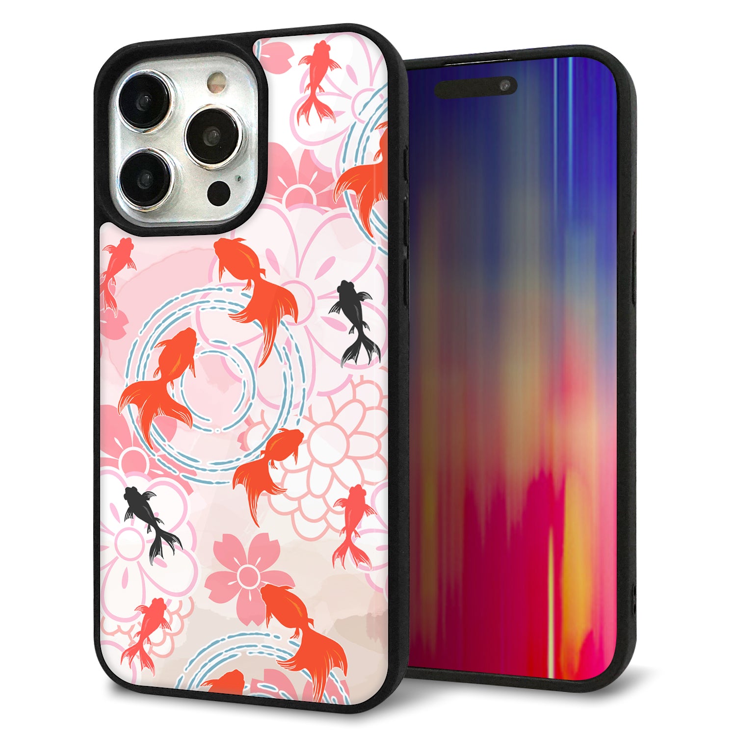 iPhone15 Pro Max 強化ガラス&TPUスマホケース ガラプリ【HA217 金魚 花柄 ピンク】