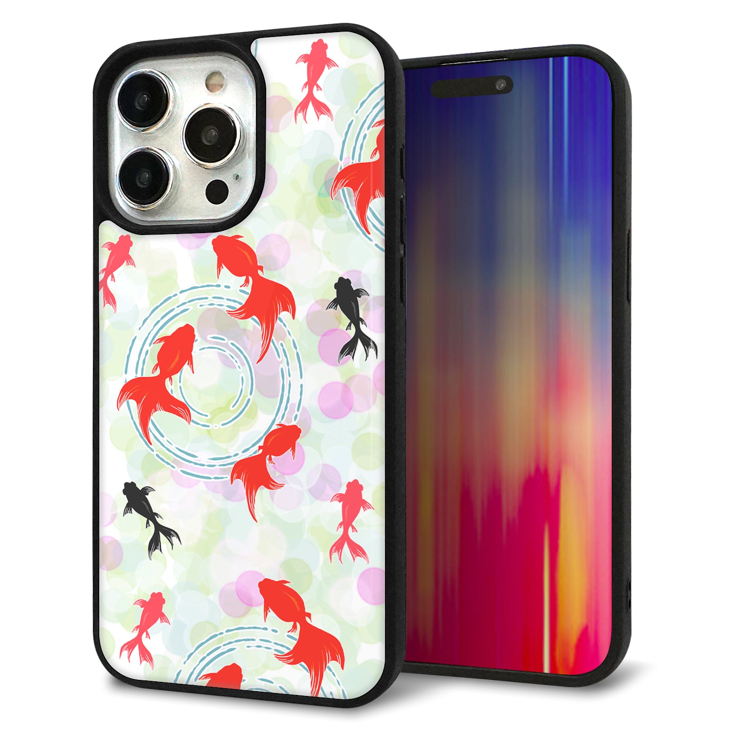 iPhone15 Pro Max 強化ガラス&TPUスマホケース ガラプリ【HA224 金魚 点々 ホワイト】