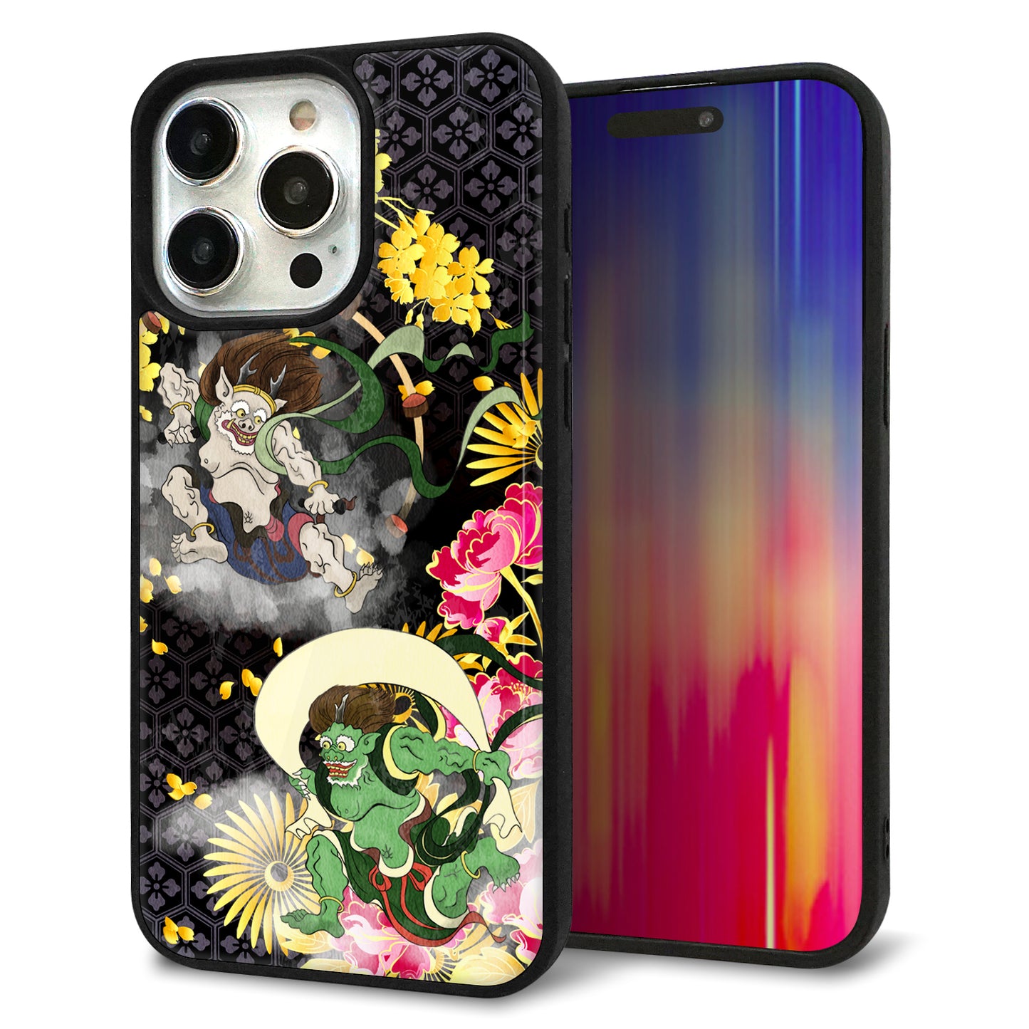 iPhone15 Pro Max 強化ガラス&TPUスマホケース ガラプリ【HA239 風神雷神 牡丹】