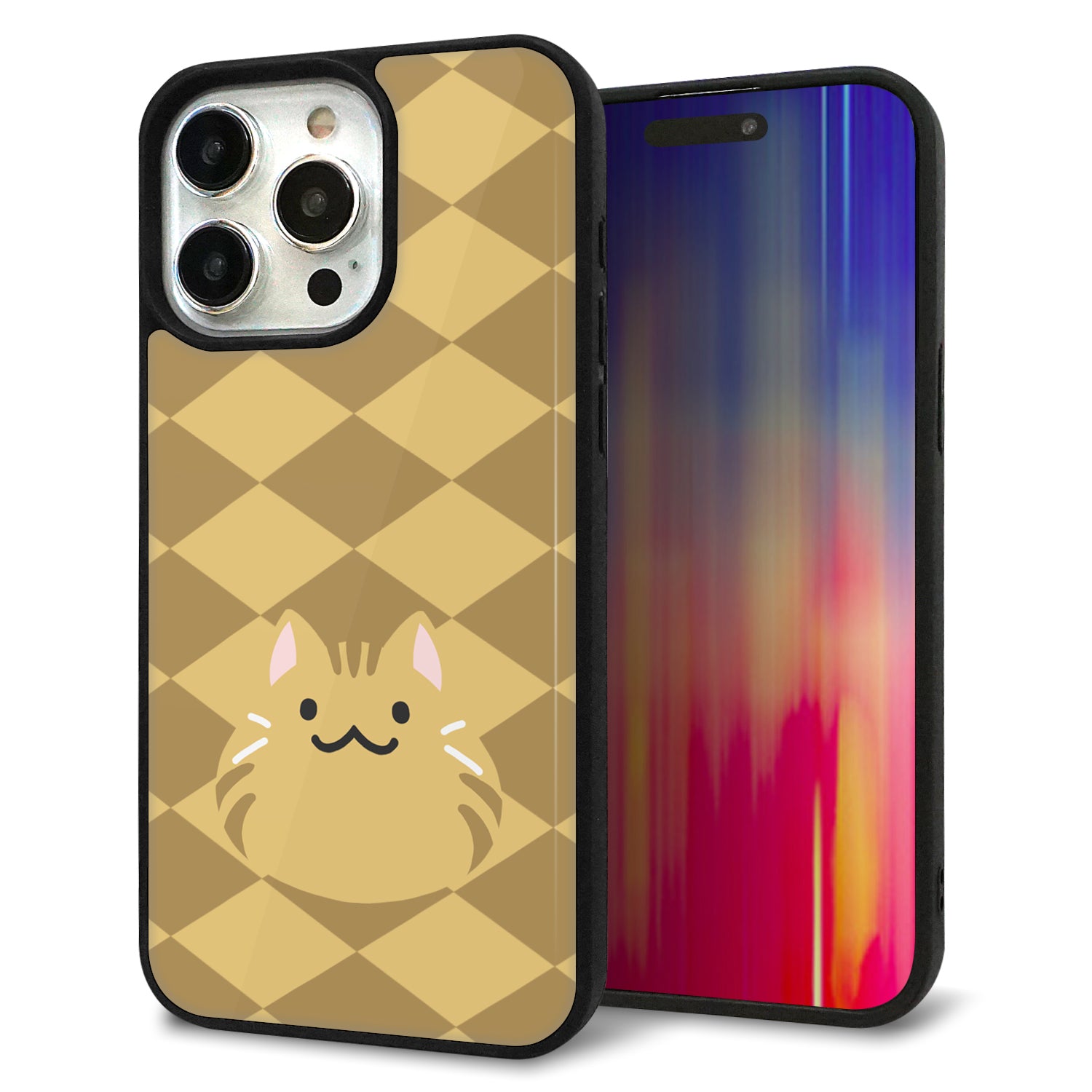 iPhone15 Pro Max 強化ガラス&TPUスマホケース ガラプリ【HA247 もちねこ 茶トラ】