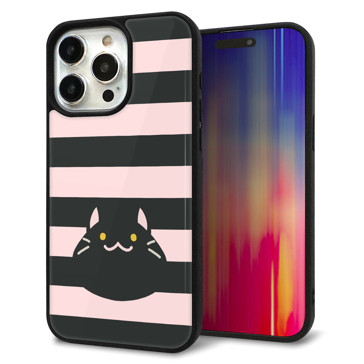 iPhone15 Pro Max 強化ガラス&TPUスマホケース ガラプリ【HA249 もちねこ クロ】