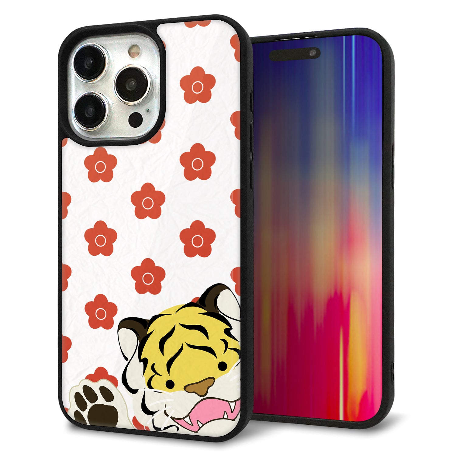 iPhone15 Pro Max 強化ガラス&TPUスマホケース ガラプリ【HA254 虎アップ】