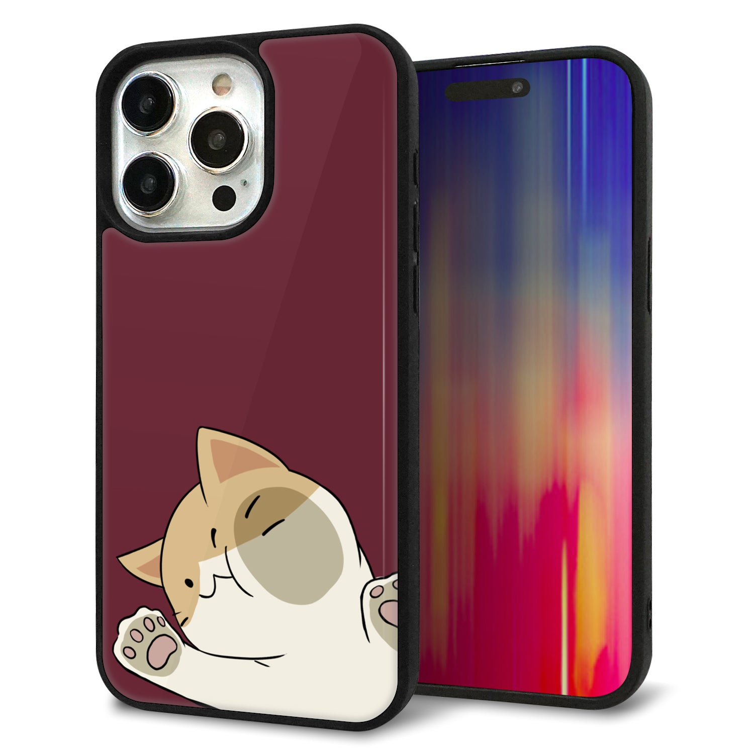 iPhone15 Pro Max サイレントキャット プリント手帳型ケース 耐衝撃