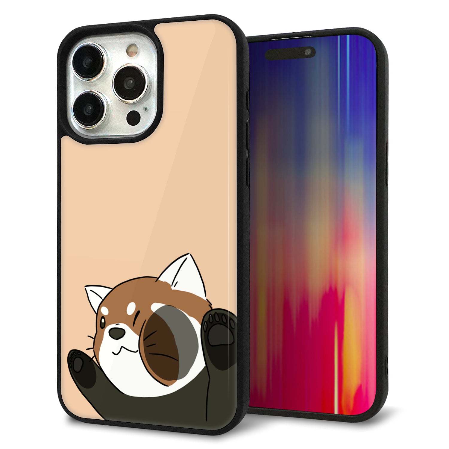 iPhone15 Pro Max 強化ガラス&TPUスマホケース ガラプリ【HA302 むぎゅっとレッサーパンダ】