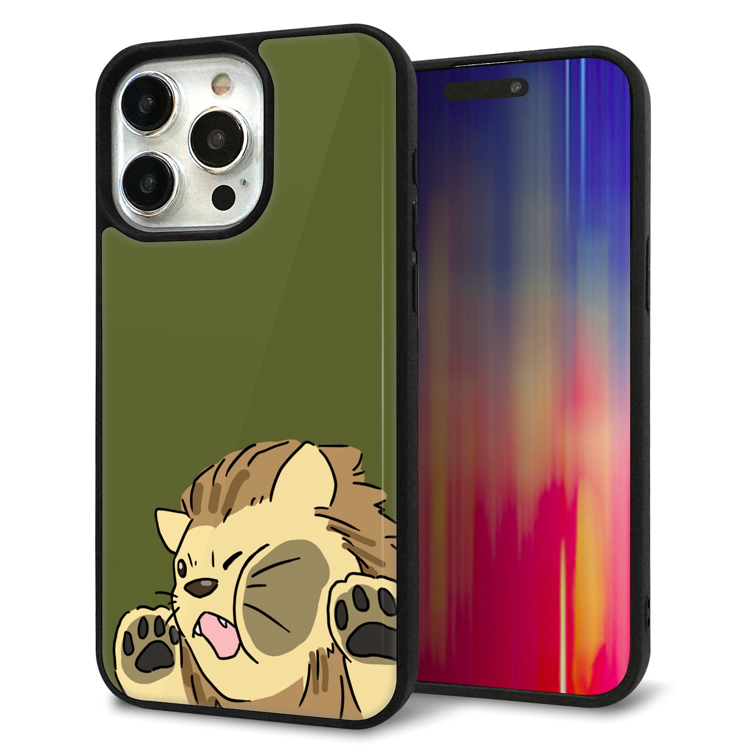 iPhone15 Pro Max 強化ガラス&TPUスマホケース ガラプリ【HA304 むぎゅっとライオン】